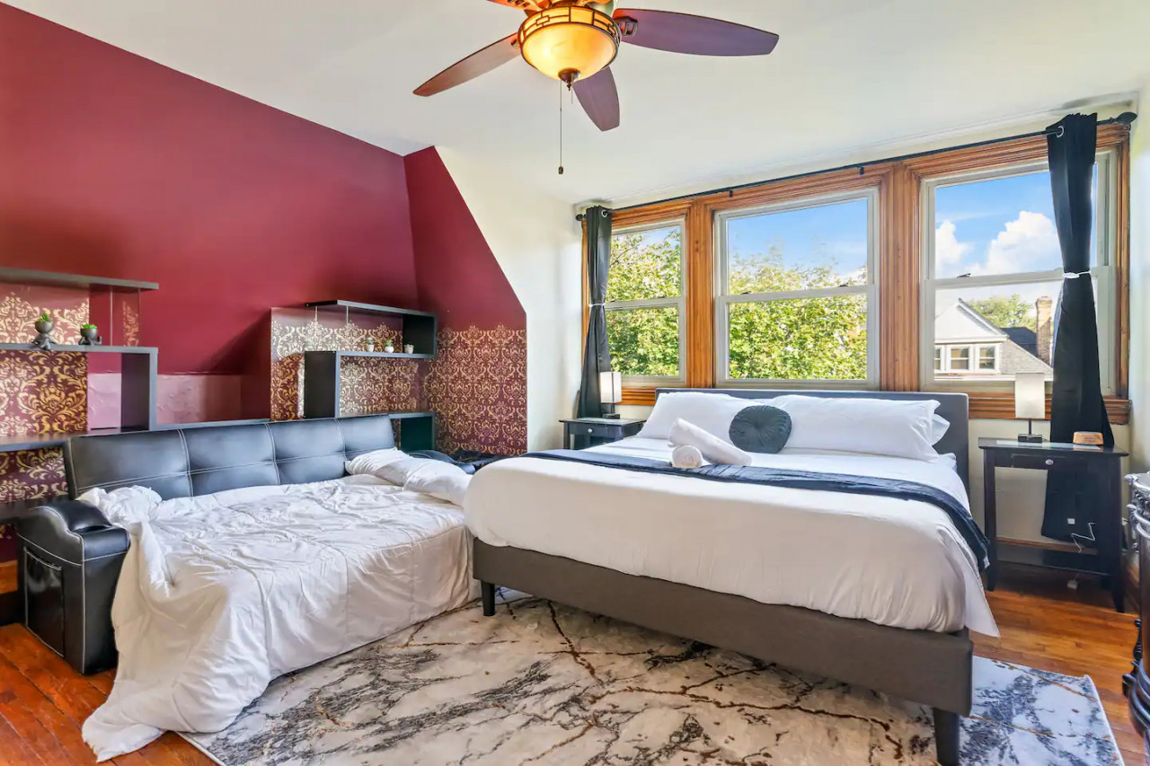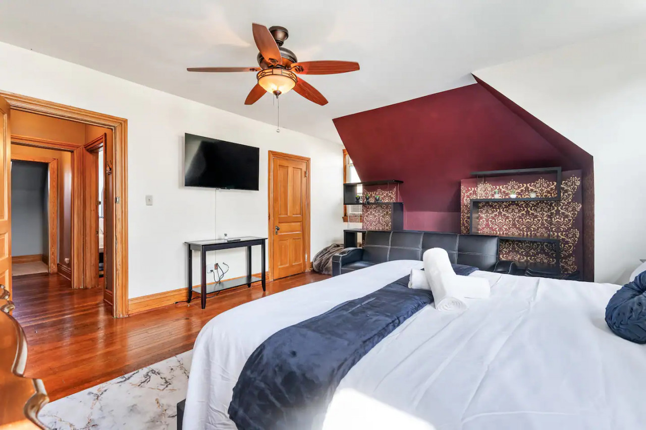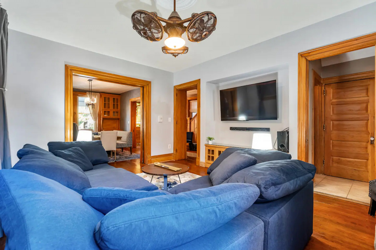 Welcome to our spacious 3-story vintage home in Shadyside! The home is full of charm and character, comfortably sleeping up to 16 guests across three floors. Large groups will be very comfortable here, and we’re excited to host you. With unique features like 5 bedrooms, a luxurious steam shower, and plenty of space to spread out, this is one of our most popular homes for families and groups.