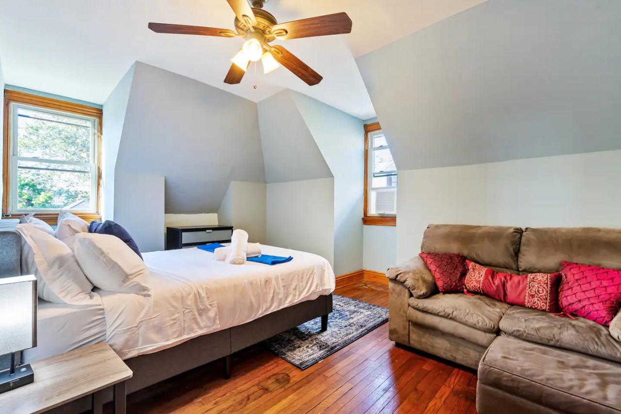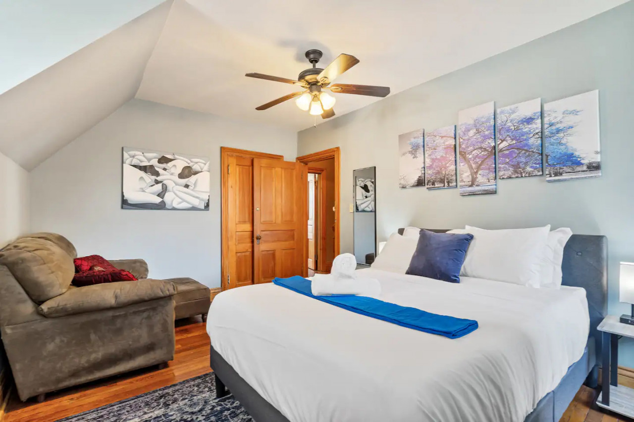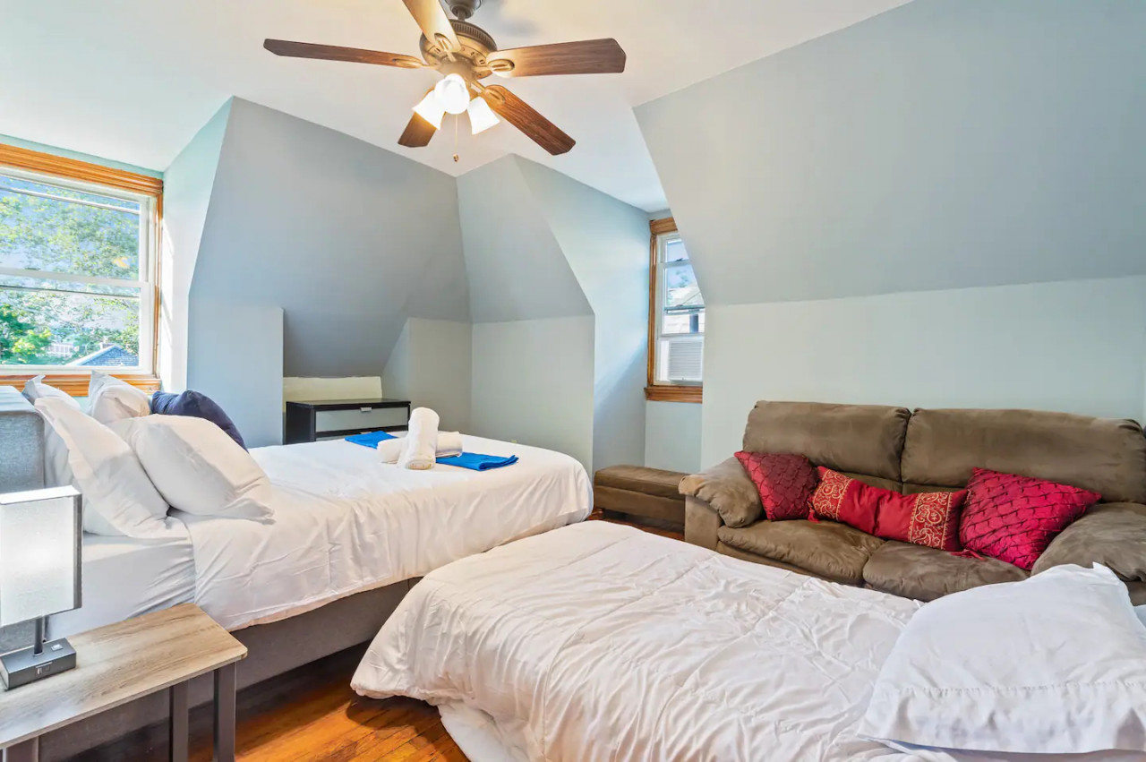 Welcome to our spacious 3-story vintage home in Shadyside! The home is full of charm and character, comfortably sleeping up to 16 guests across three floors. Large groups will be very comfortable here, and we’re excited to host you. With unique features like 5 bedrooms, a luxurious steam shower, and plenty of space to spread out, this is one of our most popular homes for families and groups.