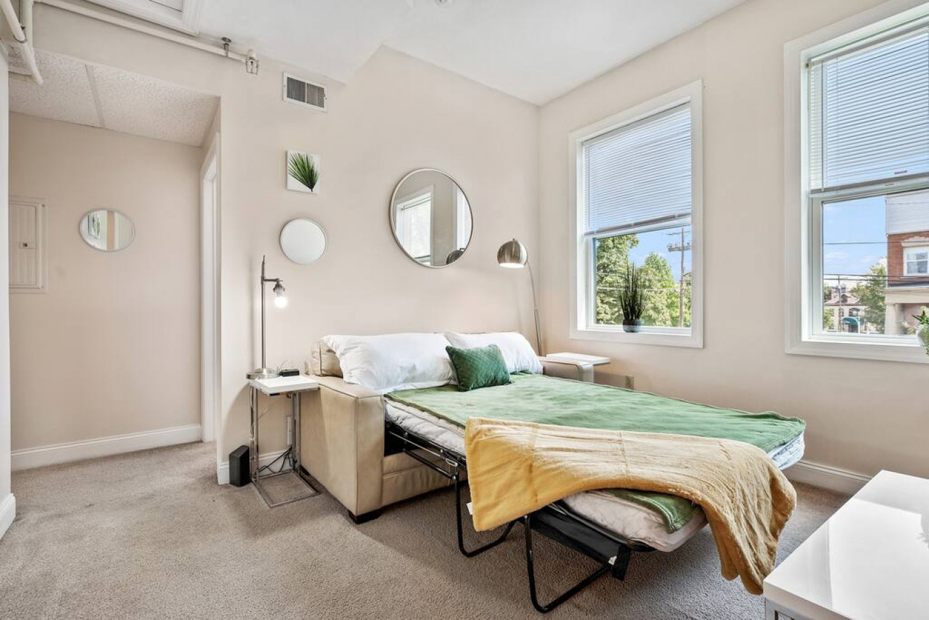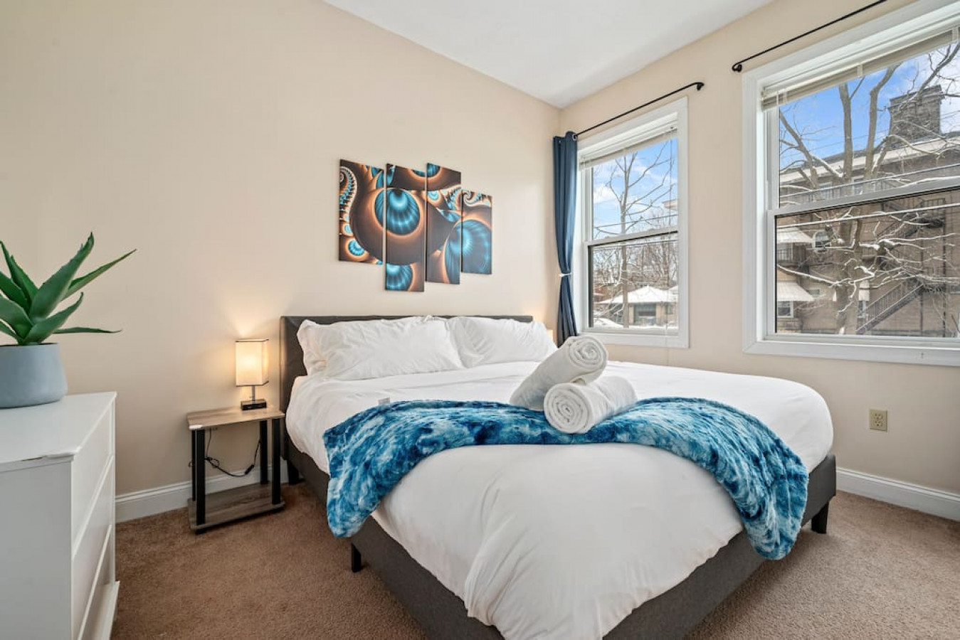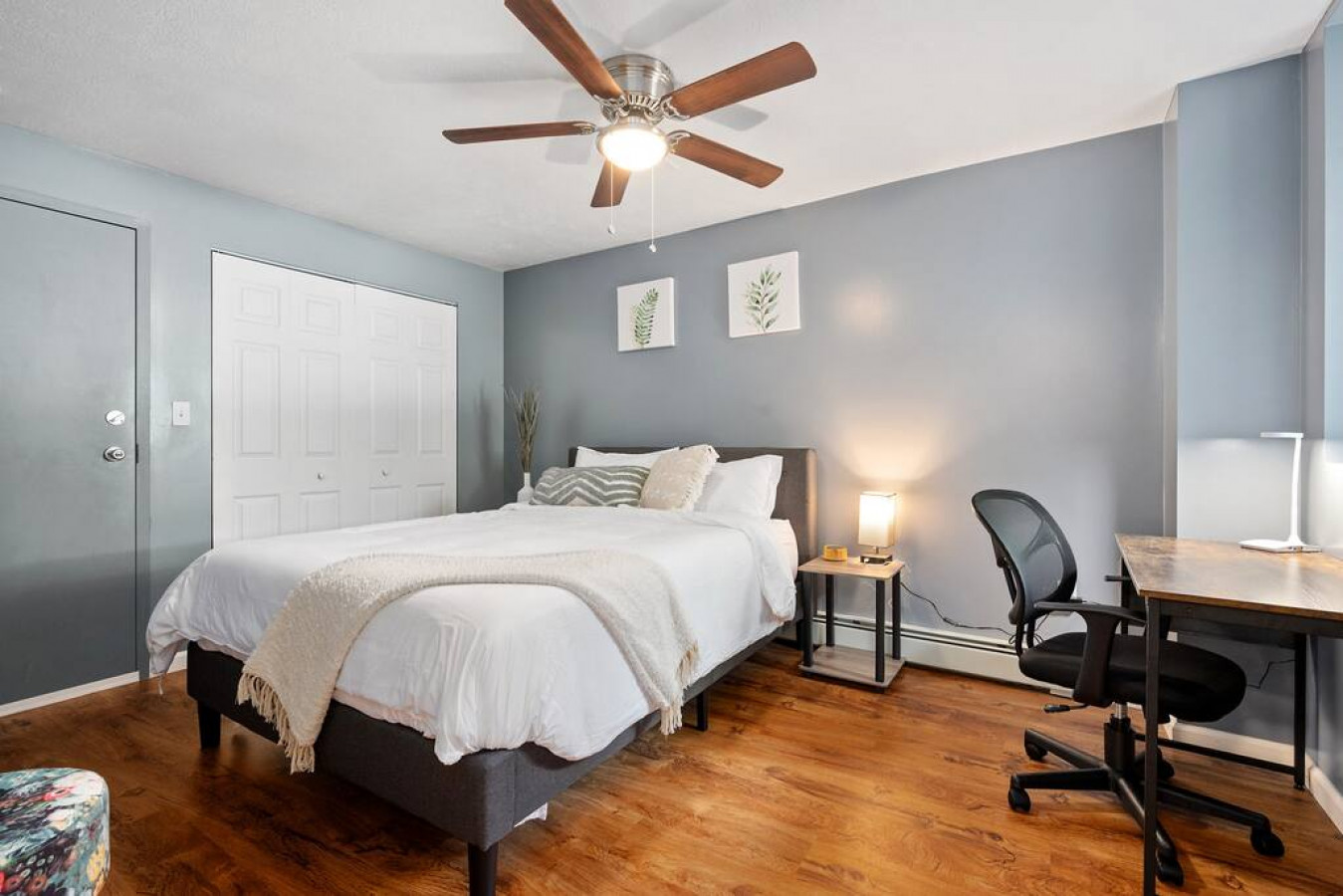 The second bedroom is right next to this one and is also stocked with a comfy Puffy Royal Mattress for a great nights sleep. There is also a small desk for any business needs during your stay if you need next to the bed!