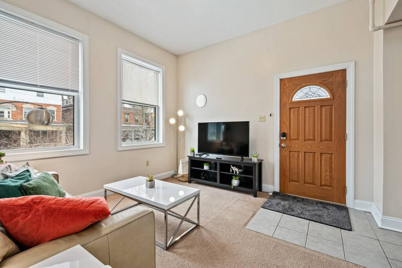 June 2025 4.00We were in town for the PGA event and stayed here all week. We had 6 adults and 2 toddlers and felt like we had enough space. The home is an older Pittsburgh home with character; the photos are a bit brighter/newer in appearance than the home was in-person but that didn’t bother us. The beds were comfy and there were a lot of amenities (towels, dishes, laundry access, etc.) that were helpful. We did pay extra for the two parking spots in the back (not sure why this isn’t included and costs extra, especially since there was roadwork preventing street parking during our stay). We loved the park at the school across the street and used it daily for our toddlers to get some outdoor time and energy out! There’s plenty of places to walk for food within ~1 mile: Whole Foods, Shadyside restaurants, etc. and there’s a bus stop right out the door we took the bus downtown for a Pirates game no problem! The 1A apartment could use 2 blackout curtains per window (there was only 1) but we managed.