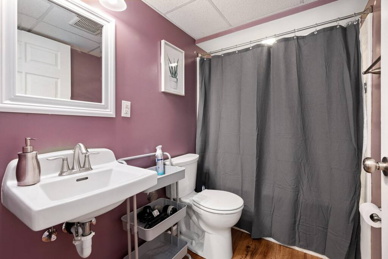 The bathroom is fully stocked and equipped for you with essentials provided (Shampoo, conditioner, hand soap, toilet paper, hand towels/ bath towels, etc). Topped off with a luxurious waterfall shower head!