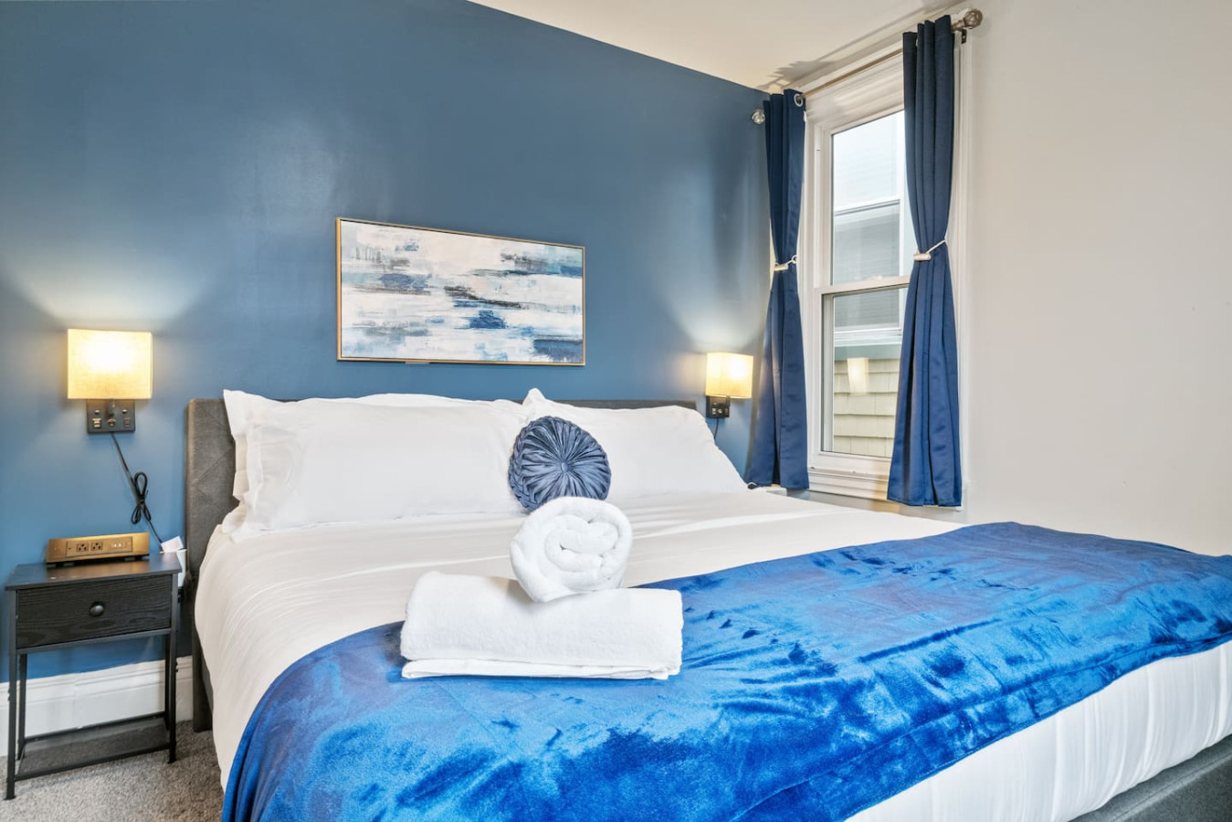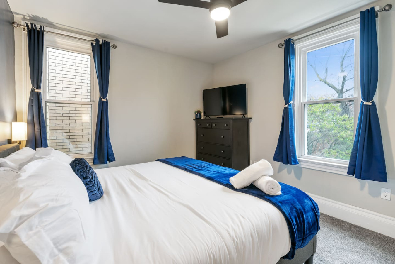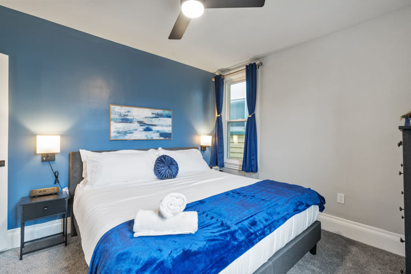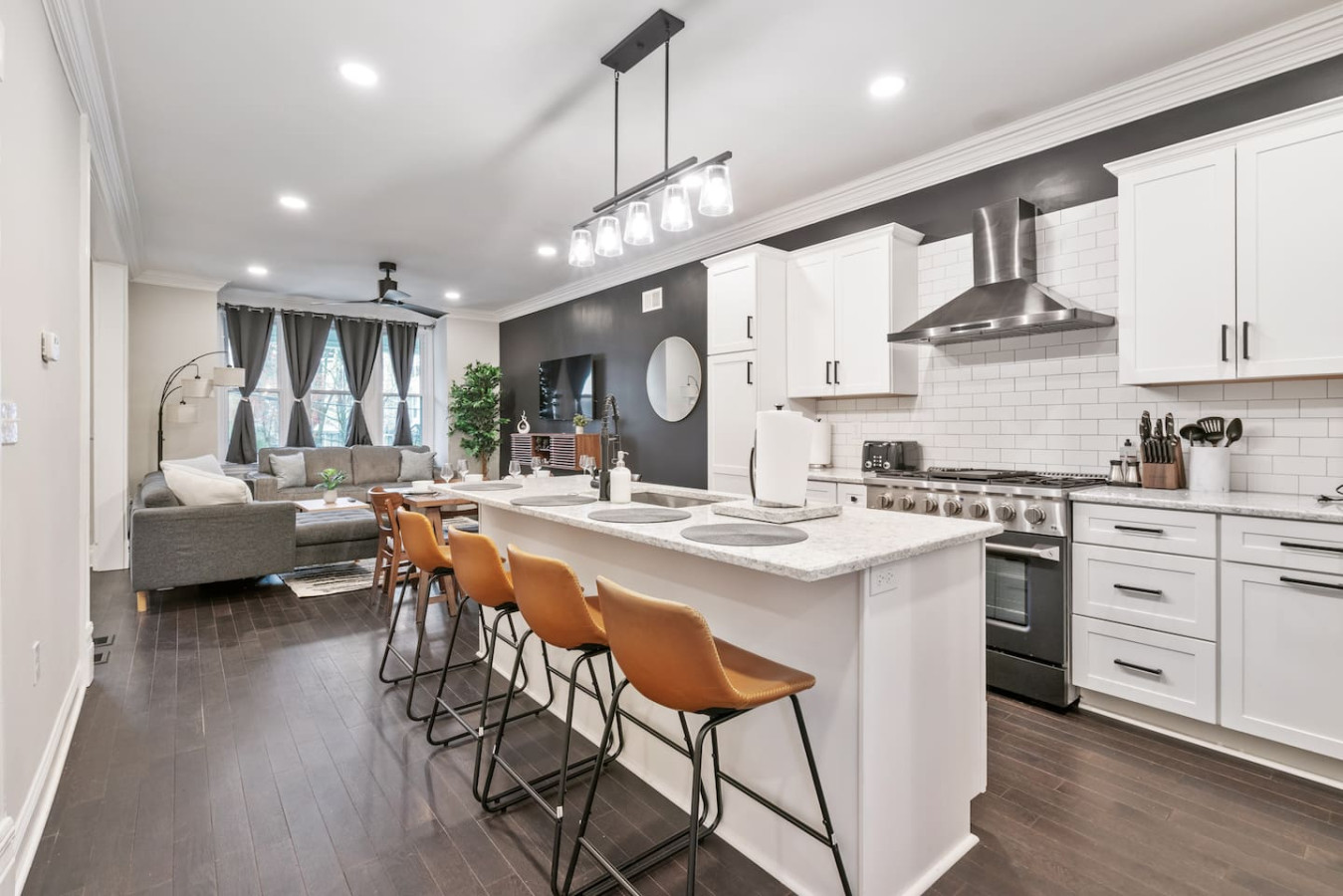 / nightWelcome to our stunning 4-story home in Shadyside! This home is huge with 4 BRs + a finished basement along with 3.5 baths, perfectly located right next to UPMC Shadyside Hospital. Also a short walk from Giant Eagle Market District! ⭐7 beds with memory foam mattresses (3 King / 1 Queen/ 3 Full) ⭐Private backyard ⭐1 rollaway bed + 1 crib + 2 sleeper sofas ⭐Washer/ dryer ⭐Street parking (Paid options nearby) My team and I are here for you 24/7 before, during and after your stay with us! Welcome to your perfect Pittsburgh retreat — a spacious 5-bedroom, 3.5-bathroom home that comfortably sleeps 12 guests across four beautifully designed floors. Ideal for large families, friend groups, or corporate stays, this home combines comfort, convenience, and thoughtful amenities in one of the city’s most walkable neighborhood. Nestled just a short walk away from Giant Eagle Market District and Walnut Street’s restaurants and cafes, you'll enjoy easy access to groceries, coffee shops, and entertainment. UPMC and several universities (CMU, Pitt, Chatham) are also a short drive away. First Floor: Step into comfort and convenience on the beautifully designed first floor of this inviting home. The open-concept layout seamlessly connects the living room, dining area, and fully stocked kitchen—creating the perfect space to gather, relax, and enjoy your stay. Living and Dining Area: Unwind in the cozy living area featuring two plush sofas (one converts into a queen-sized pull-out bed), a large smart TV for streaming your favorite shows, and a 6-seater dining table ideal for shared meals or game nights. Kitchen: The kitchen is a cook’s delight, complete with a 4-seat breakfast bar, modern appliances, and all the essentials you need to whip up anything from a quick breakfast to a full dinner. Convenient amenities include a half bathroom, in-unit laundry with a free washer and dryer, and access to both a charming furnished front porch and a partially fenced backyard. Second Floor: Head up the stairwell just off the living room to the second floor, where you'll find three inviting bedrooms and a full bathroom—creating a comfortable and private space for rest and relaxation. Full Bathroom: This shared bathroom features a combination tub and shower, perfect for soaking or a quick rinse. Stocked with bathroom essential, it offers everything you need to start or end your day feeling refreshed. Bedroom 1 – The Blue Room: A calming retreat with a king-size bed, 6-drawer dresser, 43” Smart TV, and a closet. Ideal for unwinding in comfort after a busy day. Bedroom 2 – The Green Room: This versatile space includes two full-size beds, a 3-drawer dresser, a 43” Smart TV, and a closet—perfect for kids, friends, or extra guests. Bedroom 3 – The Charcoal Room: The most spacious of the three, this room features a king-size bed, 8-drawer dresser, 43” Smart TV, full-length mirror, armchair, and a large closet. It also includes a writing desk and chair, as well as a twin rollaway bed, making it perfect for longer stays or guests needing extra room to spread out. Third Floor: The luxurious top floor is dedicated entirely to the Primary Suite, offering a private, elevated retreat perfect for relaxation or remote work in total comfort. Bedroom 4 – Primary Suite: This spacious and serene suite features a king-size bed and a sectional sofa that converts into a queen-size sleeper—ideal for families or extra guests. A large electric standing desk provides a dedicated workspace, while a 3-drawer dresser and 43” Smart TV add to the room’s functionality and comfort. Whether you're catching up on rest or checking in on work, this space is designed to accommodate it all. En Suite Bathroom: Step into a spa-like experience with a stunning ensuite bathroom that features a double vanity, expansive layout, and a luxurious walk-in shower with multiple shower heads. It’s the perfect way to start your morning or unwind at the end of the day. Basement: The lower level of the home offers a quiet and private retreat, perfect for guests seeking a bit of extra space and privacy. This thoughtfully arranged area includes a queen bed and a full bed, comfortably accommodating multiple guests. A full bathroom on this level adds convenience, while a full-size dresser provides plenty of storage for longer stays. A dedicated desk creates a comfortable workspace, and a foosball table adds a playful touch—great for winding down after a busy day. Parking: Street parking is available with required registration through the city. While parking in the area can be tight at times, we’re happy to offer information on nearby paid overflow parking options for added convenience.