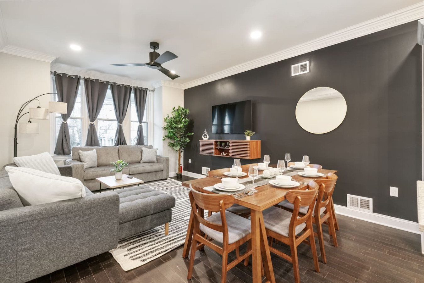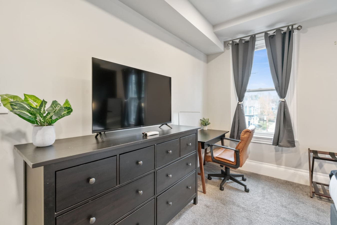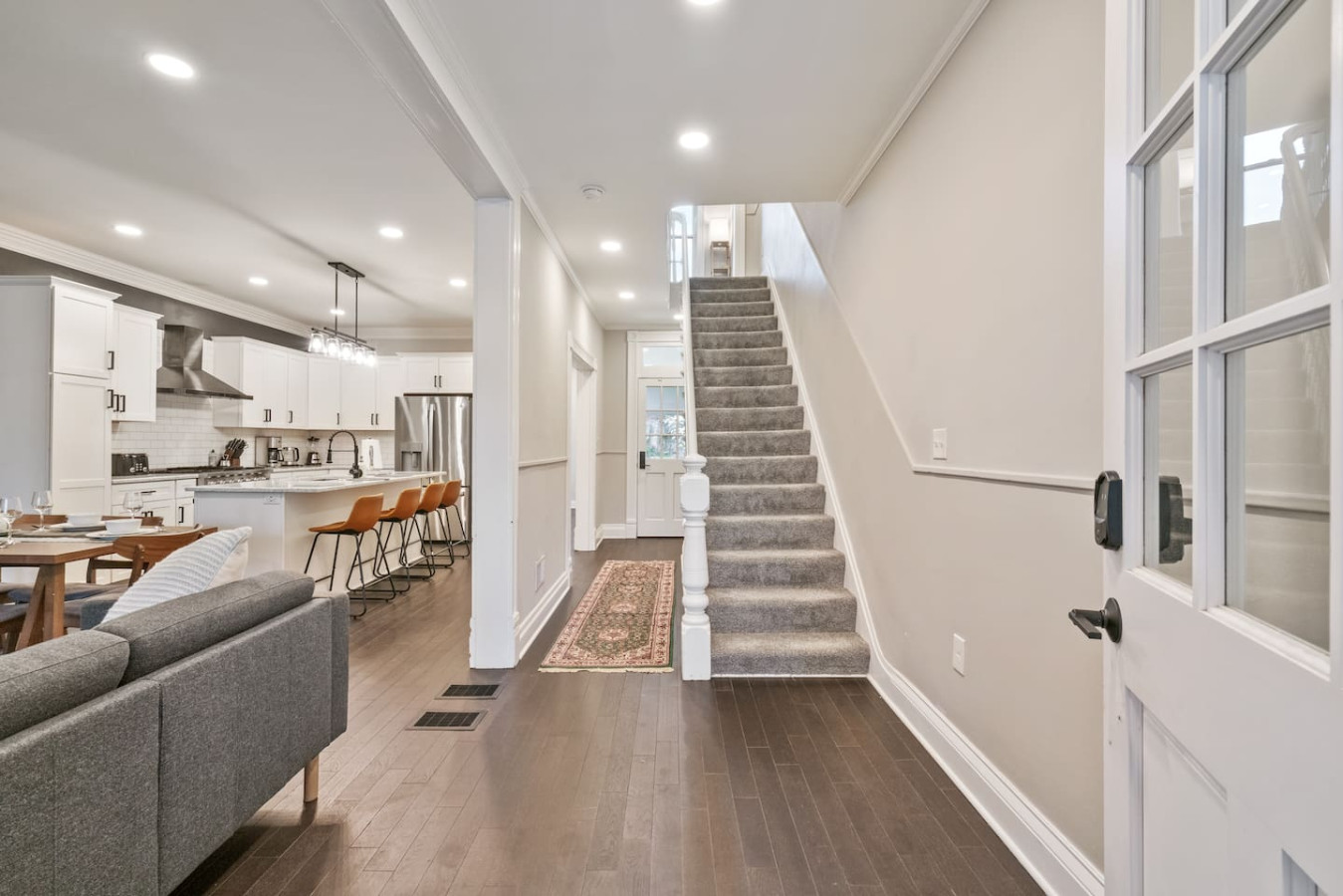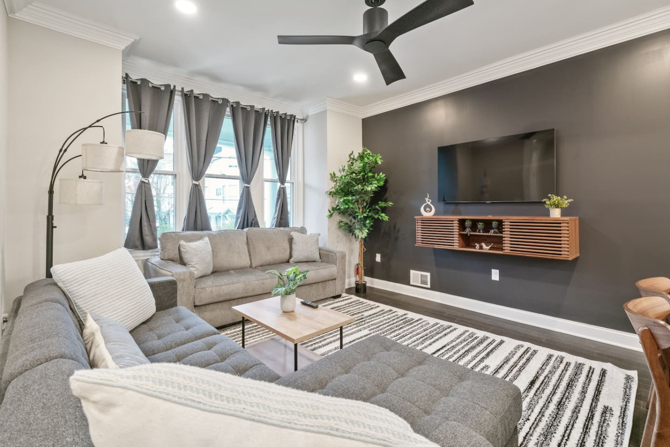 / nightWelcome to our stunning 4-story home in Shadyside! This home is huge with 4 BRs + a finished basement along with 3.5 baths, perfectly located right next to UPMC Shadyside Hospital. Also a short walk from Giant Eagle Market District! ⭐7 beds with memory foam mattresses (3 King / 1 Queen/ 3 Full) ⭐Private backyard ⭐1 rollaway bed + 1 crib + 2 sleeper sofas ⭐Washer/ dryer ⭐Street parking (Paid options nearby) My team and I are here for you 24/7 before, during and after your stay with us! Welcome to your perfect Pittsburgh retreat — a spacious 5-bedroom, 3.5-bathroom home that comfortably sleeps 12 guests across four beautifully designed floors. Ideal for large families, friend groups, or corporate stays, this home combines comfort, convenience, and thoughtful amenities in one of the city’s most walkable neighborhood. Nestled just a short walk away from Giant Eagle Market District and Walnut Street’s restaurants and cafes, you'll enjoy easy access to groceries, coffee shops, and entertainment. UPMC and several universities (CMU, Pitt, Chatham) are also a short drive away. First Floor: Step into comfort and convenience on the beautifully designed first floor of this inviting home. The open-concept layout seamlessly connects the living room, dining area, and fully stocked kitchen—creating the perfect space to gather, relax, and enjoy your stay. Living and Dining Area: Unwind in the cozy living area featuring two plush sofas (one converts into a queen-sized pull-out bed), a large smart TV for streaming your favorite shows, and a 6-seater dining table ideal for shared meals or game nights. Kitchen: The kitchen is a cook’s delight, complete with a 4-seat breakfast bar, modern appliances, and all the essentials you need to whip up anything from a quick breakfast to a full dinner. Convenient amenities include a half bathroom, in-unit laundry with a free washer and dryer, and access to both a charming furnished front porch and a partially fenced backyard. Second Floor: Head up the stairwell just off the living room to the second floor, where you'll find three inviting bedrooms and a full bathroom—creating a comfortable and private space for rest and relaxation. Full Bathroom: This shared bathroom features a combination tub and shower, perfect for soaking or a quick rinse. Stocked with bathroom essential, it offers everything you need to start or end your day feeling refreshed. Bedroom 1 – The Blue Room: A calming retreat with a king-size bed, 6-drawer dresser, 43” Smart TV, and a closet. Ideal for unwinding in comfort after a busy day. Bedroom 2 – The Green Room: This versatile space includes two full-size beds, a 3-drawer dresser, a 43” Smart TV, and a closet—perfect for kids, friends, or extra guests. Bedroom 3 – The Charcoal Room: The most spacious of the three, this room features a king-size bed, 8-drawer dresser, 43” Smart TV, full-length mirror, armchair, and a large closet. It also includes a writing desk and chair, as well as a twin rollaway bed, making it perfect for longer stays or guests needing extra room to spread out. Third Floor: The luxurious top floor is dedicated entirely to the Primary Suite, offering a private, elevated retreat perfect for relaxation or remote work in total comfort. Bedroom 4 – Primary Suite: This spacious and serene suite features a king-size bed and a sectional sofa that converts into a queen-size sleeper—ideal for families or extra guests. A large electric standing desk provides a dedicated workspace, while a 3-drawer dresser and 43” Smart TV add to the room’s functionality and comfort. Whether you're catching up on rest or checking in on work, this space is designed to accommodate it all. En Suite Bathroom: Step into a spa-like experience with a stunning ensuite bathroom that features a double vanity, expansive layout, and a luxurious walk-in shower with multiple shower heads. It’s the perfect way to start your morning or unwind at the end of the day. Basement: The lower level of the home offers a quiet and private retreat, perfect for guests seeking a bit of extra space and privacy. This thoughtfully arranged area includes a queen bed and a full bed, comfortably accommodating multiple guests. A full bathroom on this level adds convenience, while a full-size dresser provides plenty of storage for longer stays. A dedicated desk creates a comfortable workspace, and a foosball table adds a playful touch—great for winding down after a busy day. Parking: Street parking is available with required registration through the city. While parking in the area can be tight at times, we’re happy to offer information on nearby paid overflow parking options for added convenience.