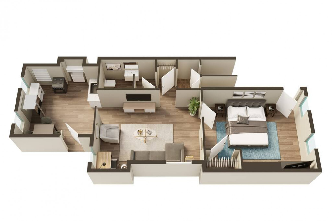 The Bedroom: Relax into the night in the King sized Tuft & Needle memory foam mattress. There is also a large closet with plenty of hangers, a dresser, and a 32" TCL Roku Smart TV so you can unwind before bed.