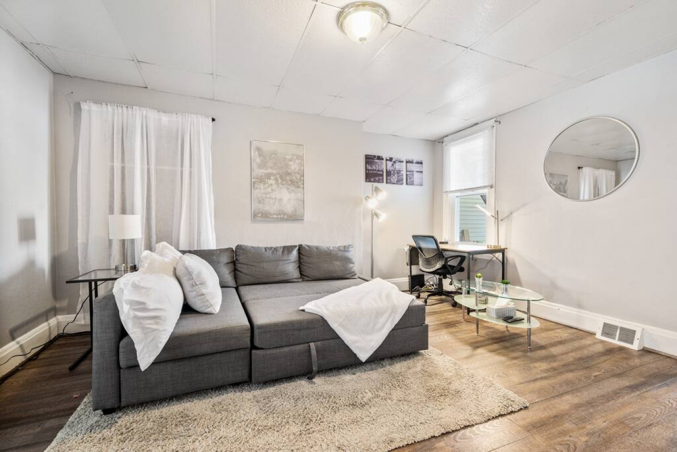 Welcome to our beautiful 1 bedroom apartment! Fully stocked and equipped for monthly stays, or nightly rentals. Located right in the heart of Bloomfield! Welcome to our beautiful 1 bedroom apartment! Fully stocked and equipped for monthly stays, or nightly rentals. Located right in the heart of Bloomfield! Relax into the night with a comfortable Tuft and Needle King sized mattress! Unwind at night with the 32" TCL Roku TV, with ample closet space and a 6 drawer dresser. Relax into the night with a comfortable Tuft and Needle King sized mattress! Unwind at night with the 32" TCL Roku TV, with ample closet space and a 6 drawer dresser. Sparkling clean bathroom topped off with a luxurious waterfall shower head. All essentials, towels, and even shampoo/ conditioner are provided! Sparkling clean bathroom topped off with a luxurious waterfall shower head. All essentials, towels, and even shampoo/ conditioner are provided! Fully stocked kitchen equipped for all of your cooking and dining needs. Pots/ pans, plates, cups and cooking supplies all provided. Eat at the 3-seater dining table! Fully stocked kitchen equipped for all of your cooking and dining needs. Pots/ pans, plates, cups and cooking supplies all provided. Eat at the 3-seater dining table! Beautiful back patio that is shared by 3 units in the building (one above and one next door). This is a relaxing spot to hang out at and has a perfect view of sunsets in the evening! Beautiful back patio that is shared by 3 units in the building (one above and one next door). This is a relaxing spot to hang out at and has a perfect view of sunsets in the evening! There is a desk in the living room overlooking the back yard for any business needs during your stay. There is a desk in the living room overlooking the back yard for any business needs during your stay. The couch in the living room pulls out into a queen sized bed, allowing an extra person to sleep in the apartment if desired! The couch in the living room pulls out into a queen sized bed, allowing an extra person to sleep in the apartment if desired! Here is a detailed floor plan of the space so you know exactly what to expect from our 700 square foot apartment! Here is a detailed floor plan of the space so you know exactly what to expect from our 700 square foot apartment! Two white noise machines are provided in the bedroom along with black out curtains to help ensure a peaceful nights sleep :) Two white noise machines are provided in the bedroom along with black out curtains to help ensure a peaceful nights sleep :) In the bedroom there is a 6-drawer dresser and plenty of closet space for you during your stay. In the bedroom there is a 6-drawer dresser and plenty of closet space for you during your stay. Another view of the kitchen with plenty of natural light and space for cooking/ dining. Another view of the kitchen with plenty of natural light and space for cooking/ dining. Another view of the clean bathroom of the apartment for during your stay. Another view of the clean bathroom of the apartment for during your stay. Enjoy our free washer and dryer in the basement during your stay that is shared by one other apartment in the building. Enjoy our free washer and dryer in the basement during your stay that is shared by one other apartment in the building. Front view of the house, the entrance to the apartment is up the three steps into the door centered in the photo! Front view of the house, the entrance to the apartment is up the three steps into the door centered in the photo! Back yard of the apartment with nice views and a cozy spot to hang out in! Back yard of the apartment with nice views and a cozy spot to hang out in! It would be my pleasure to host you! Feel free to message me with any questions, my team and I are available for you 24/7 and are eager to help you! It would be my pleasure to host you! Feel free to message me with any questions, my team and I are available for you 24/7 and are eager to help you!
