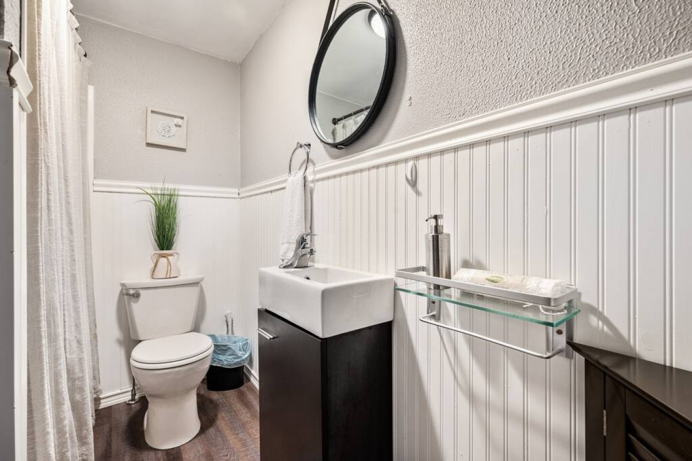 The Bathroom: Located near the entrance and is stocked with shampoo, conditioner, hair dryer, and other basic necessities. End your day or start your morning off with a luxurious waterfall shower head.