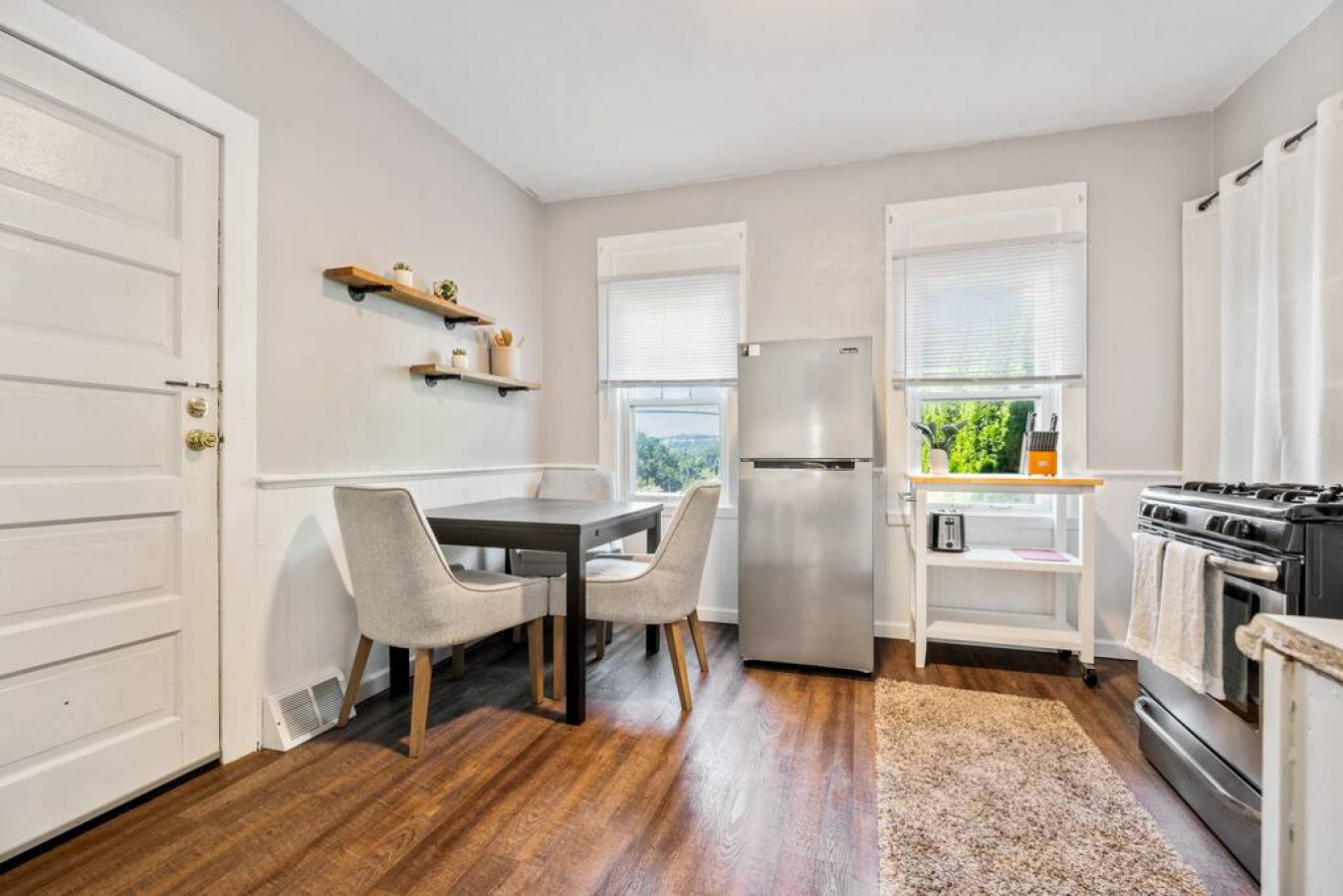 Apt is in a great area with tons of amenities around. Kitchen and dining area is a great size and gets nice light. The bed is super comfy, bedroom is spacious for an apartment of this size. The backyard was perfect for my two dogs to run around, be mindful it is shared.
