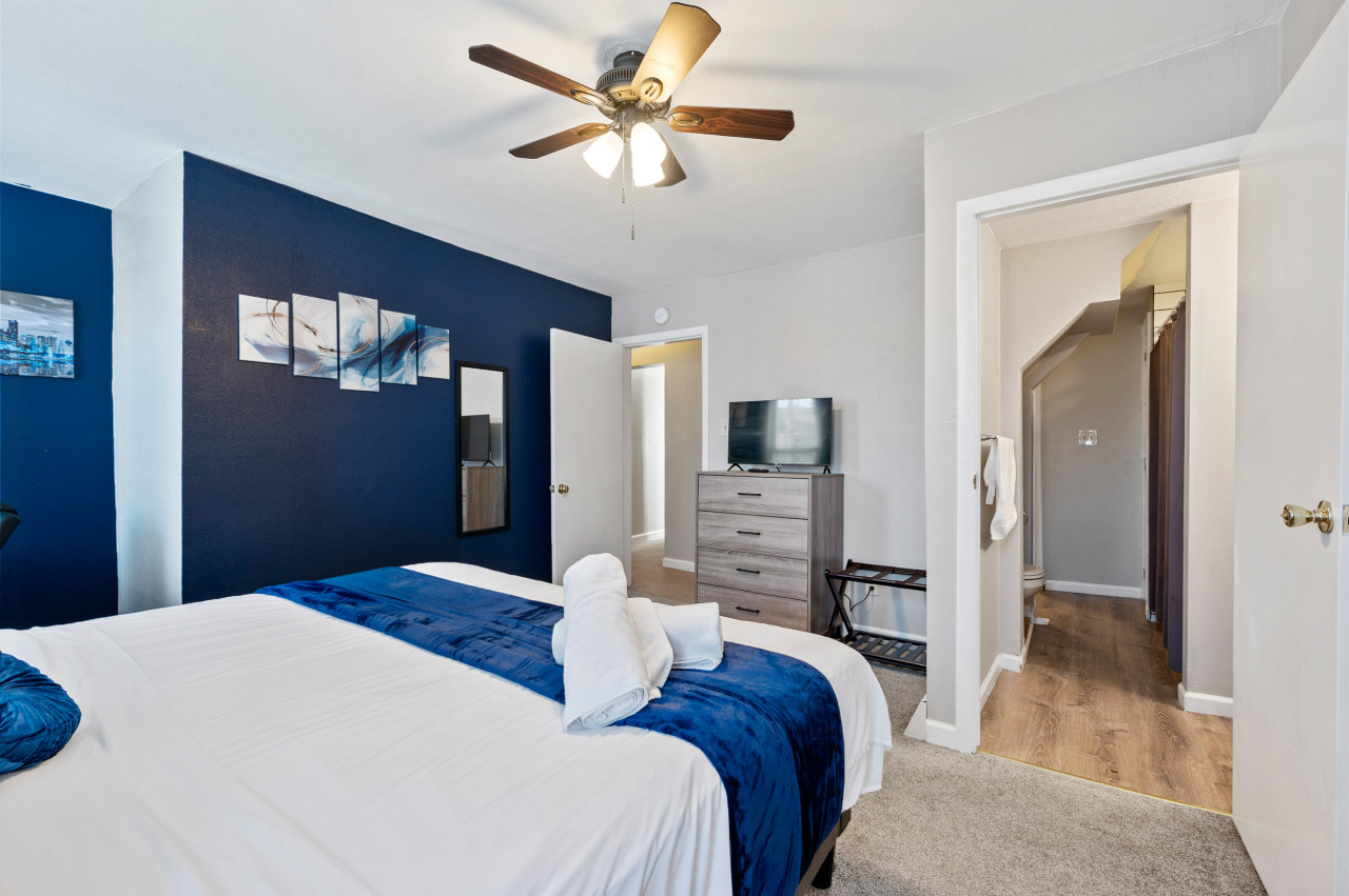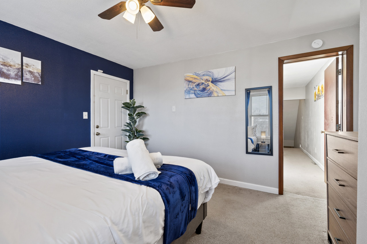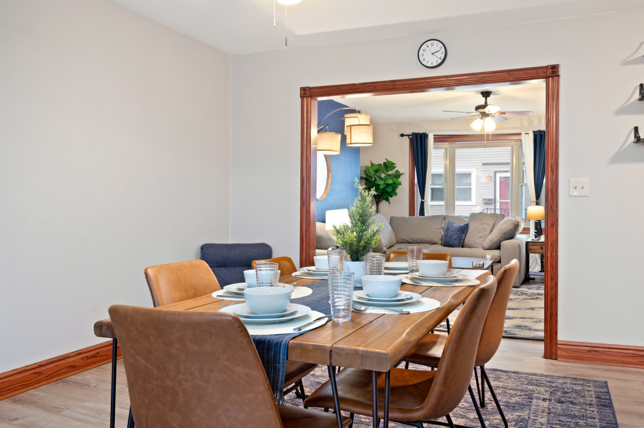 July 2024 4.00Jake was a responsive and helpful host. The rooms and beds are comfortable and as described. The bathroom situation is a bit weird; one bedroom has to use a bathroom on the 1st floor as their main bathroom as the upstairs bathroom connects with the 2 other rooms. If you are planning on cooking meals etc at the Airbnb, bring paper plates and extra utensils, the house only has about 5 of everything.