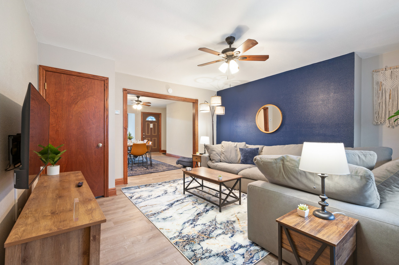 February 2024 4.00As a native Pittsburgher, and therefore familiar with the City, the location of Jake's place in Bloomfield is beyond convenient. You can easily navigate to any part of the City easily; Bloomfield is also such a quaint and fun neighborhood. The house was spacious enough for my 5 person family, and our sweet pup was able to join too! The beds were lux comfortable and king-sized: perfect for the entire family. The big couch in the living room was a hit with my kiddos! Overall, we enjoyed!