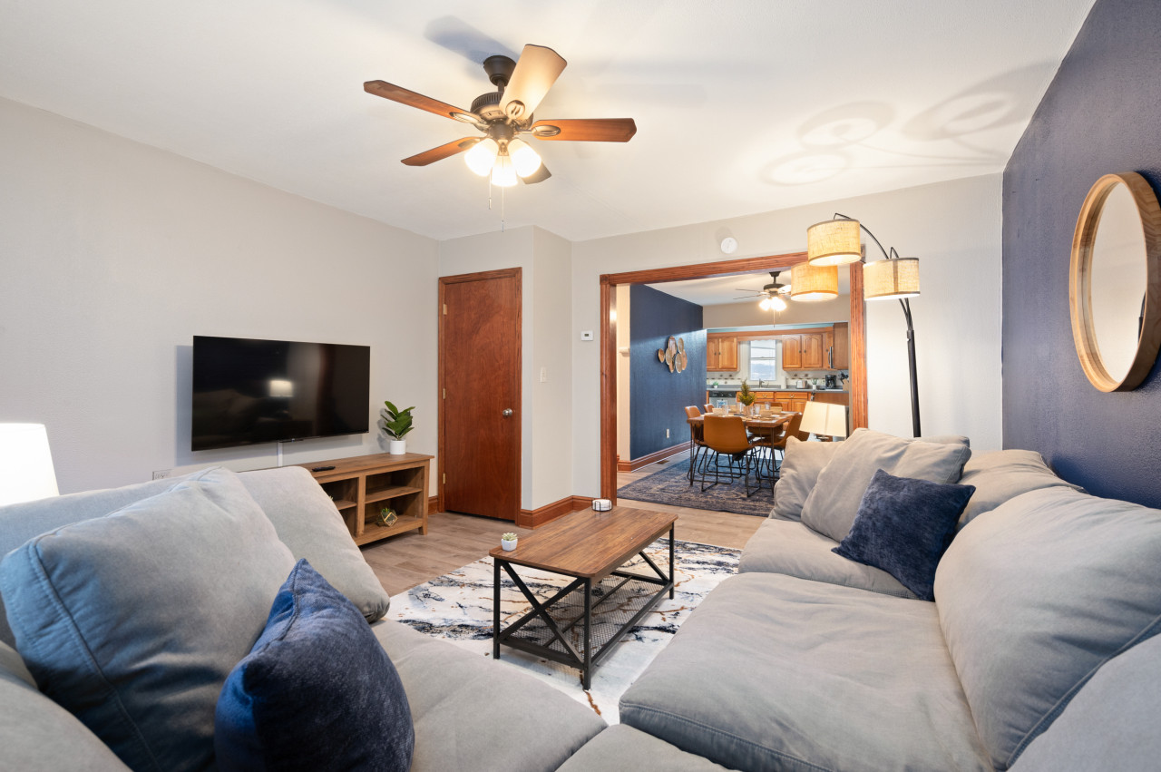 January 2024 3.00Our stay was limited as we were only here to visit a hospital in the area where our daughter had surgery. Appreciated the host accommodating early check in! Beds were very comfortable. Thankful for that as we needed rest. I think the aspect of this place being newly renovated was a bit misleading. Some parts were but much of it wasn’t. Old carpets in parts of the house. Broken closet door in bedroom. Very old very unclean vent fan in upstairs bathroom. Oven smoked because it was dirty (?) so we couldn’t use it. And lack of outlets in downstairs bathroom was inconvenient but we made it work. Kitchen was very dated. So for a quick stay we were fine. But some more improvements would be needed to qualify it as a renovation.