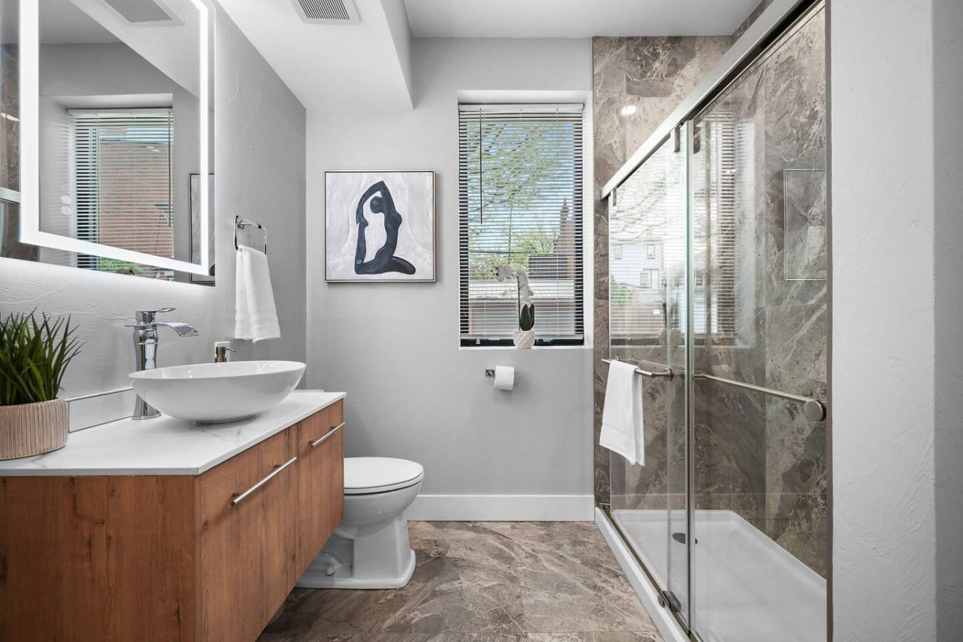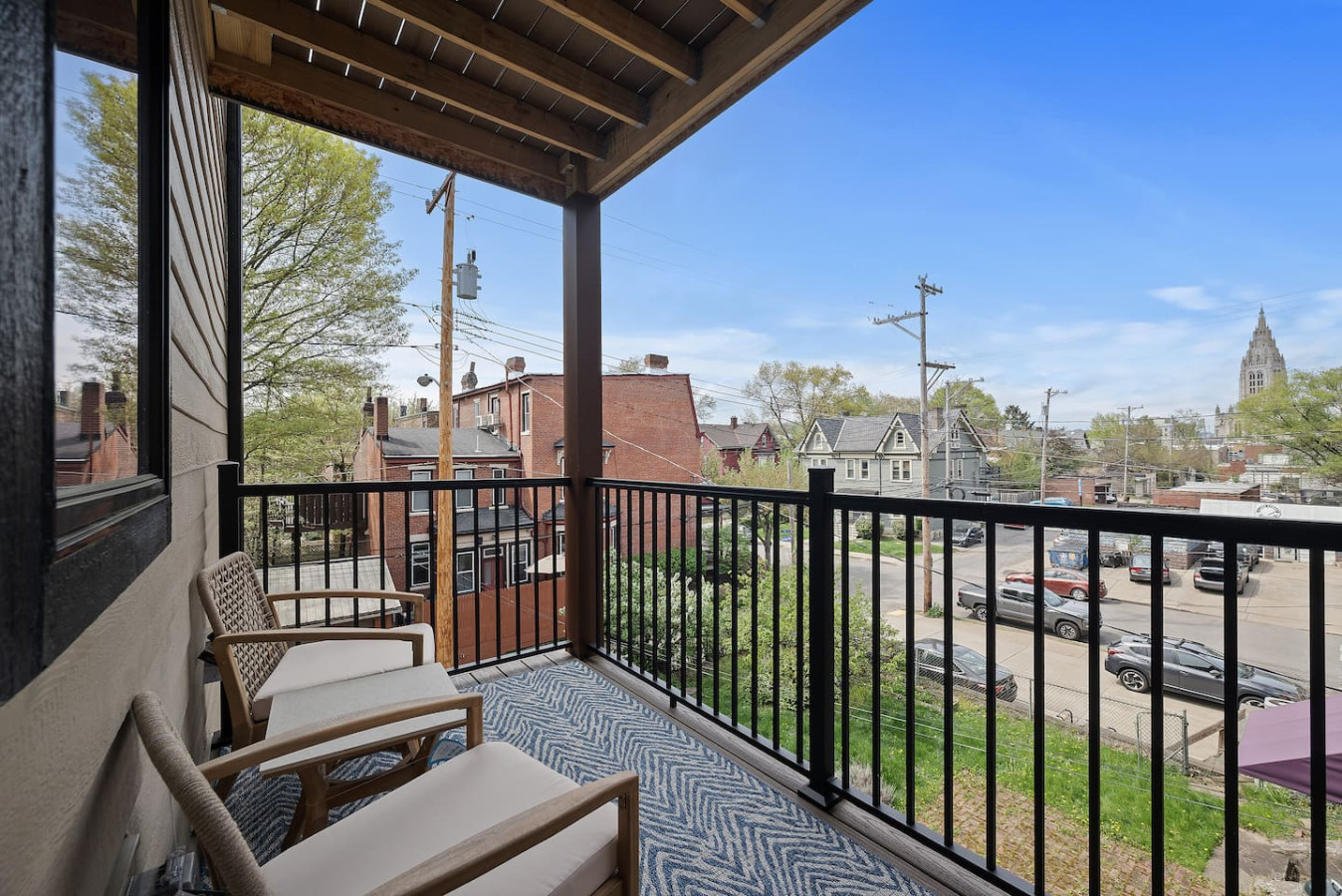 / nightEnjoy our immaculate 3 BR suite on S Highland Ave, right in the heart of Shadyside. This is a brand new construction building in 2025 with a modern design, ultra-comfortable beds, and two private decks. This apartment is just steps away from several local shops, cafes, and dining options in one of Pittsburgh’s most vibrant neighborhoods. ⭐1 King Bed / 2 Queen bed (memory foam mattresses) ⭐Twin Rollaway bed + Pack N Play ⭐Free in-unit washer/dryer ⭐3 Desks with speedy WiFi ⭐24/7 guest support **Please note there is no elevator in the building and accessing this apartment requires walking up several flights of stairs. This apartment is the 5th unit from the ground and you must walk up 4 half-flights of stairs to access this apartment, each flight of stairs is 10 steps each.** Discover our welcoming 3-bedroom suite, perfectly situated in the vibrant Shadyside neighborhood. This spacious getaway blends contemporary comfort with prime convenience, offering seamless access to everything Pittsburgh has to offer. Stroll just 0.4 miles (7 minutes) to Shadyside’s bustling shops and cafes, or take a short 5-minute drive to Carnegie Mellon University, just 1.5 miles away. Downtown Pittsburgh’s exciting attractions are a quick 14-minute drive from your doorstep. Master Bedroom: Once you enter, you’ll be welcomed by the master bedroom, featuring an elegant design and spacious layout. It offers a luxurious king-sized bed for ultimate comfort, large closets for ample storage, and a 50-inch mounted TV for entertainment. There’s also a dedicated workspace and access to a private deck that is fully furnished for relaxation. First Bathroom: Next to the master bedroom is the first bathroom, showcasing an elegant design with a stylish bowl sink and vanity mirror. The spacious standing shower features a luxurious rainfall showerhead and is fully stocked with essential amenities for your convenience. Along the hallway, you’ll find the in-unit washer and dryer, offering the convenience of fresh laundry at your fingertips during your stay. Second Bedroom: The second bedroom strikes a balance of comfort and functionality. It features a cozy queen-sized bed with a memory foam mattress, a spacious closet, and a dresser to keep everything tidy. For added convenience, there's also a dedicated workspace to help you stay productive. Second Bathroom: The second bathroom, conveniently located next to the second bedroom, offers a sleek design and is fully stocked with all the essentials. It also includes a soothing tub, perfect for relaxing and unwinding after a busy day. Third Bedroom: The third bedroom also offers a comfortable queen-sized bed for a restful night’s sleep, along with a 43-inch mounted TV for entertainment. Additionally, this room has a 43" desk and a dresser along with ample closet space. Kitchen: At the end of the hallway, you'll find the kitchen, complete with brand new stainless steel appliances—fridge, oven, stove, microwave, and dishwasher. This fully equipped, modern space makes meal preparation simple and convenient during your stay. Living Area/Dining Area: The open floor plan effortlessly blends the living, dining, and kitchen areas, creating a spacious and welcoming environment. The dining area, located next to the kitchen, comes fully equipped with all the essentials, from utensils to plates. Just beside it, a cozy sofa is positioned in front of a 55-inch mounted TV, offering the perfect spot for relaxation. Front Deck: Step out onto the deck from the living area, which is fully furnished with two comfortable chairs, which is a peaceful space to relax and enjoy the fresh air. Things to note: Pets: Pets are welcome for a small fee of $25 per stay. Washer/Dryer: Guests have access to a convenient in-unit washer and dryer, free of charge, making laundry a hassle-free part of your stay. Stairs: **Please note there is no elevator in the building and accessing this apartment requires walking up several flights of stairs. This apartment is the 5th unit from the ground and you must walk up 4 half-flights of stairs to access this apartment, each flight of stairs is 10 steps each.**