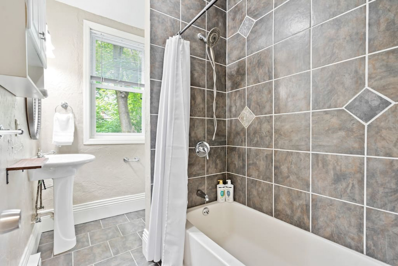 November 2023 5.00Had a great stay here! Jake was very communicative. Location was minutes from restaurants and shopping, and just a few blocks away from several bus stops. Airbnb was clean, tidy, and had everything we needed. Would note that neighbors' wood floors can creak loudly and water pressure was a tad low, but this did not materially affect our stay.