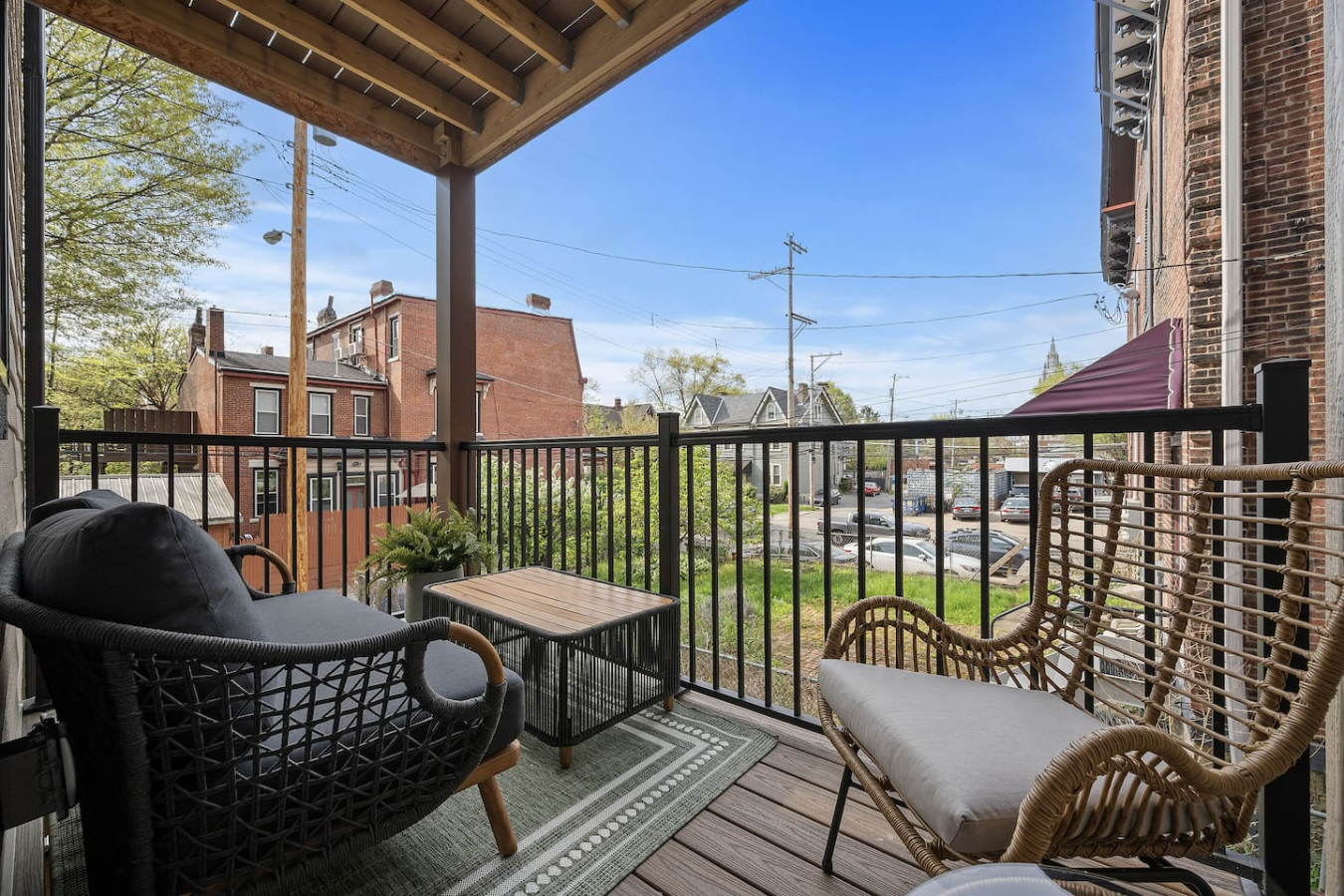 / nightEnjoy our upscale 3 BR suite on S Highland Ave, right in the heart of Shadyside. This is a brand new construction building in 2025 with a modern design, ultra-comfortable beds, free off-street parking and two private decks. Just steps away from several local shops, cafes, and dining options in one of Pittsburgh’s most vibrant neighborhoods. ⭐4 beds (1 King, 1 Queen, 2 Full) ⭐Twin Rollaway bed + Pack N Play crib ⭐Free off-street parking ⭐Washer/dryer ⭐2 Desks w/ speedy WiFi ⭐24/7 guest support **Please note: There is no elevator in the building and this apartment requires walking up stairs to access. This apartment is the 3rd unit from the ground and you must walk up 2 half-flights of steps to access this apartment, each flight of steps is 10 steps each.** Step into our inviting 3-bedroom suite, ideally located in the heart of Shadyside. Blending modern comfort with unbeatable convenience, this spacious retreat allows easy access to all that Pittsburgh has to offer. Shadyside’s vibrant shops and cafes are just 0.4 miles away, a quick 7-minute walk. Explore the campus life of Carnegie Mellon University, only 1.5 miles away, a brief 5-minute drive. Enjoy Downtown Pittsburgh’s lively attractions with a quick 14-minute drive from our location. Master Bedroom: Once you enter, you’ll be welcomed by the master bedroom, featuring an elegant design and a spacious layout. It offers a luxurious king-sized bed for ultimate comfort, large closets for ample storage, and a 50-inch mounted TV for your entertainment. Additionally, the master bedroom has a 55" desk along with an arm chair and access to a private deck that is fully furnished. First Bathroom: Next to the master bedroom is the first bathroom, showcasing an elegant design with a stylish bowl sink and a vanity mirror. The spacious standing shower features a luxurious rainfall shower head and comes fully stocked with essential amenities for your convenience. Along the hallway, you’ll find the in-unit washer and dryer, offering the convenience of fresh laundry at your fingertips during your stay. Second Bedroom: The second bedroom is thoughtfully designed for maximum sleeping capacity with two full-sized beds. Both mattresses are high-end memory foam mattresses to ensure a comfortable sleep. Black out curtains, white noise machines, and USB ports next to the beds along with ample closet space allow for a comfortable sleep! Second Bathroom: The second bathroom, located next to the second bedroom, is beautifully designed and fully equipped with bathroom essentials. It also features a relaxing tub, perfect for unwinding after a long day. Third Bedroom: The third bedroom boasts a queen-sized bed for ultimate comfort, a 43-inch mounted TV for entertainment, and plenty of storage with a closet and dresser. It also includes a dedicated workspace, making it an ideal spot for both relaxation and productivity. Kitchen: At the end of the hallway, you’ll enter the kitchen, fully equipped with brand new stainless steel appliances, including a fridge, oven, stove, microwave, and dishwasher. It’s a modern, functional space perfect for preparing meals during your stay. Living Area/Dining Area: The open floor plan seamlessly connects the living area, dining area, and kitchen, creating a spacious and inviting atmosphere. Central of the living room is a super comfortable leather sofa for relaxing and bonding. Next to the kitchen, the dining area is fully equipped with everything you need, from utensils to plates. Adjacent to the dining area is a comfy sofa, perfectly positioned in front of a 55-inch mounted TV for ultimate relaxation. Front Deck: Step outside to the deck from the living area, offering a perfect spot to unwind and enjoy the fresh air. Things to note: Parking: We have one free off-street parking space for this apartment located at the back of the building. It's a little tight accessing off of the alley way, so larger vehicles may be easier to park on the street. We can offer street parking for additional vehicles as well at no charge. Pets: Pets are welcome for a small fee of $25 per stay. Washer/Dryer: Guests have access to a convenient in-unit washer and dryer, free of charge, making laundry a hassle-free part of your stay. Stairs: Please note there is no elevator in the building and this apartment requires walking up stairs to access. This apartment is the 3rd unit from the ground and you must walk up 2 half-flights of steps to access this apartment, each flight of steps is 10 steps each.