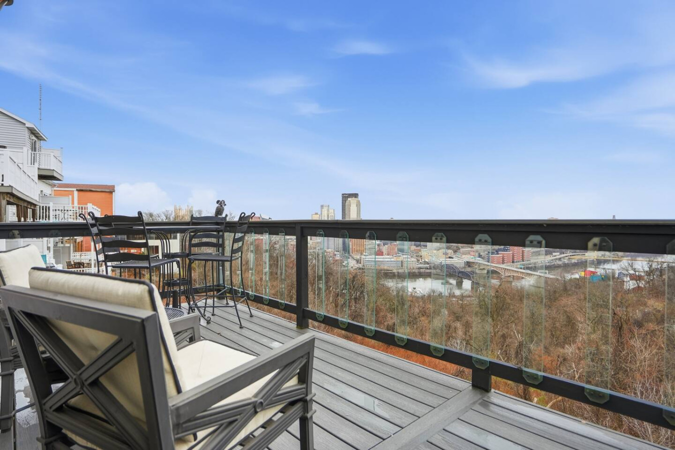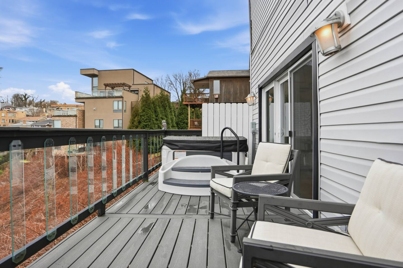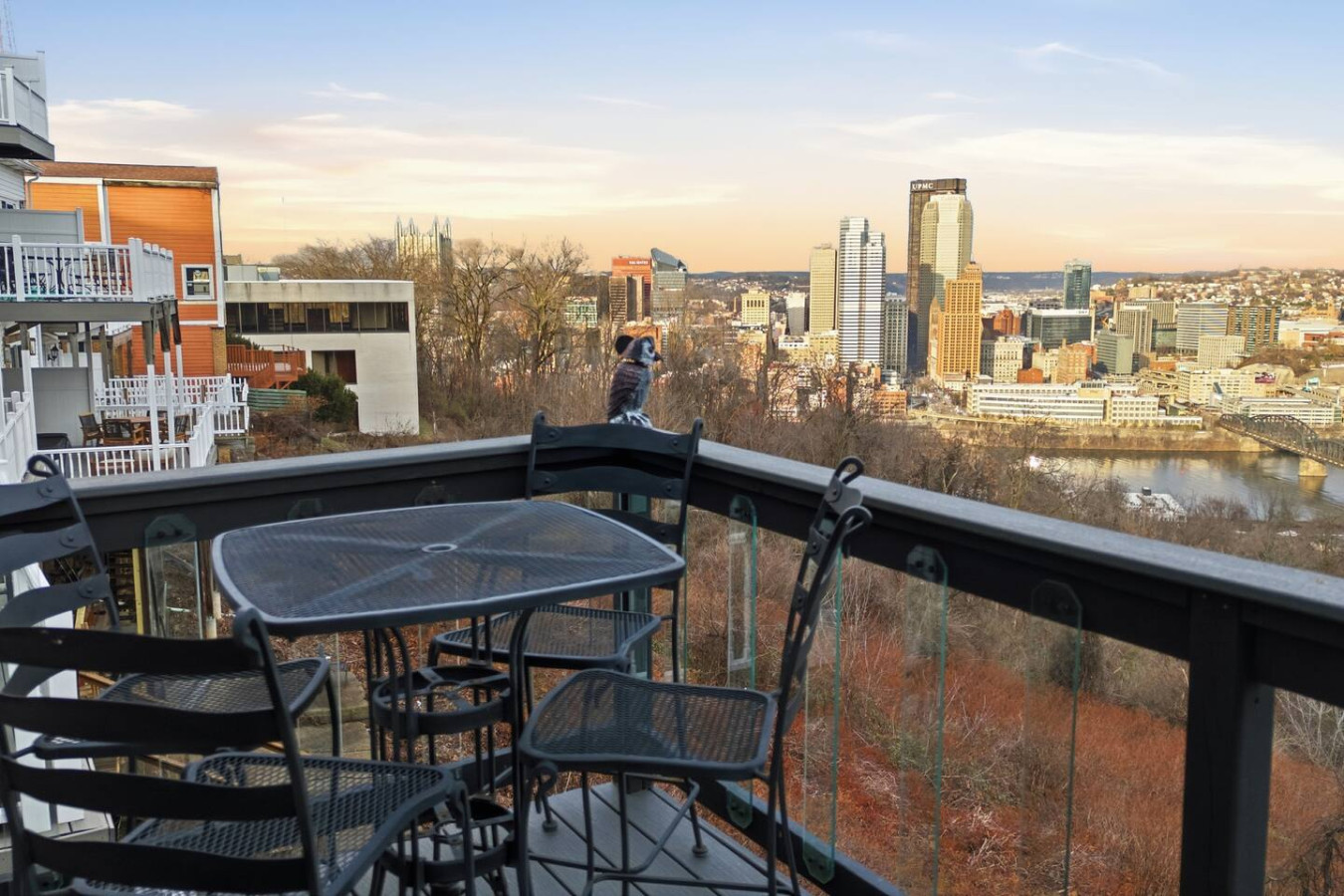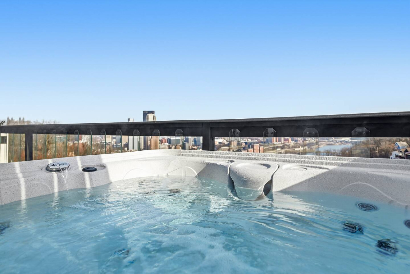 / nightEscape to this stylish 2 Bedroom suite with a private hot tub overlooking the Pittsburgh Skyline! Steps away from Coughlins Law, Shiloh Street and the Monongahela Incline (Local Favorites for dining + sighseeing!). Perfect for couples, solo travelers, or small groups looking for a relaxing stay in Pittsburgh! ➢2 Queen Beds ➢Two decks overlooking Pittsburgh (Private & Furnished) ➢Workspace ➢Fully Equipped kitchen ➢24/7 guest support ➢garage available 7 doors away Great Mt Washington location. Walk to the Monongahela Incline and ride it down to Station Square while experiencing the view. From Station Square ride the T to the North Shore, Downtown and South Hills. Ride the Gateway Clipper to Steeler games. Walk across the Smithfield Street Bridge to Downtown. Short walk to the overlooks and restaurants on Gramdview and to Shiloh street with ice cream shop, cafes, restaurants and bars.