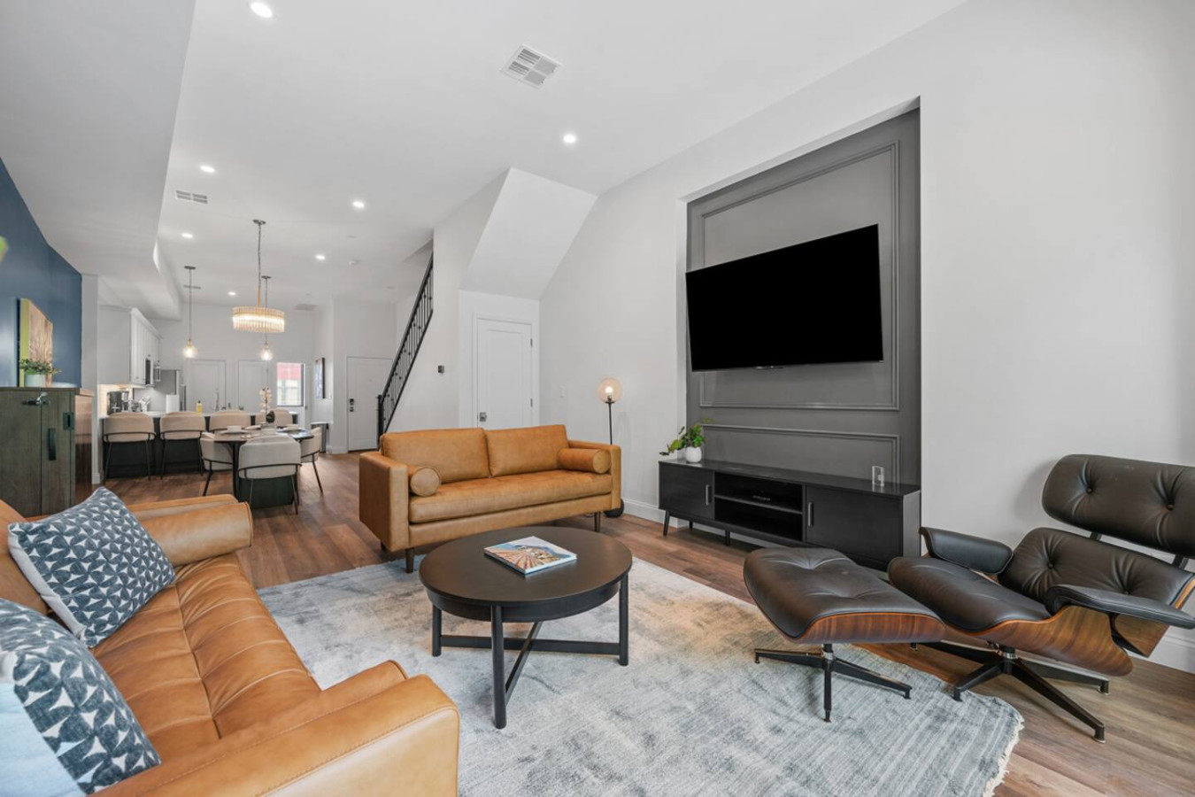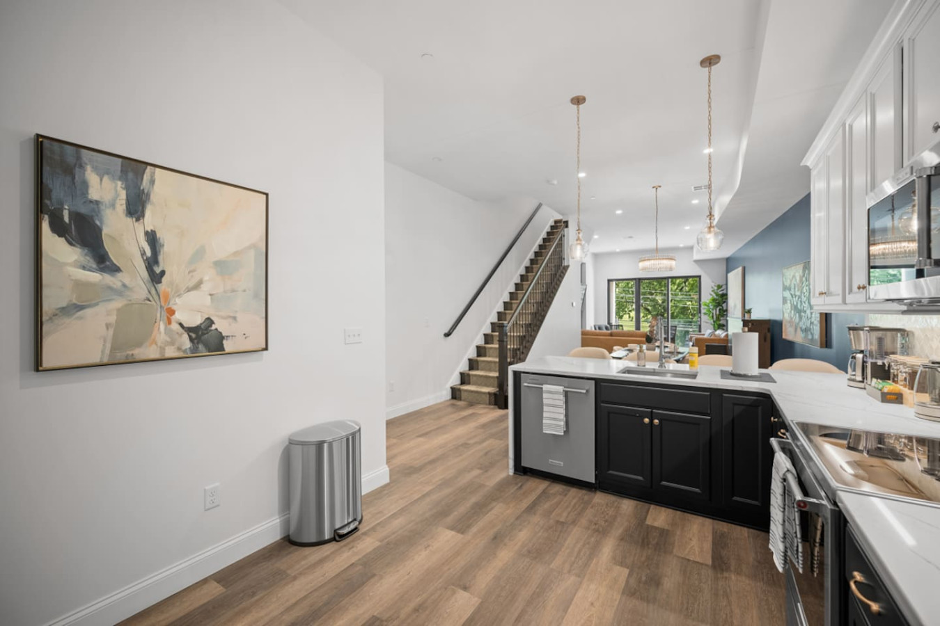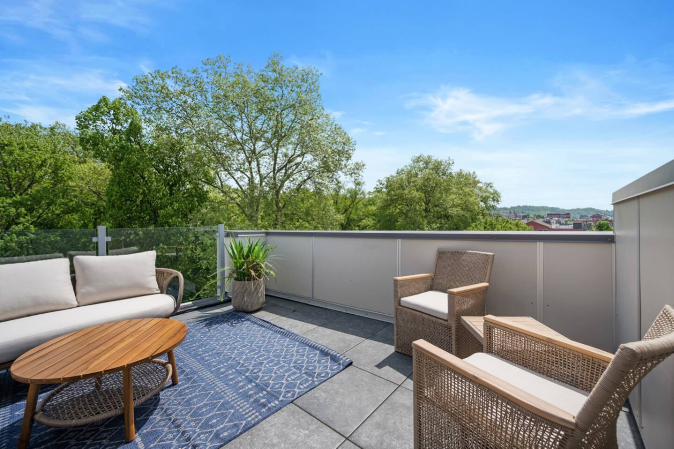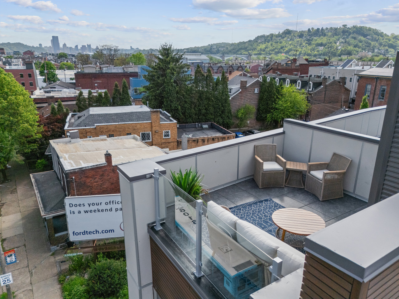 / nightEnjoy our immaculate 2 BR Penthouse suite on Butler Street, right in the heart of Lawrenceville. This is a brand new construction building in 2025. Just steps away from several local shops, cafes, and dining options in one of Pittsburgh’s most vibrant neighborhoods. ⭐2 King Beds (memory foam mattresses) ⭐1 Queen Sleeper sofa + 1 Queen Murphy Bed + Pack N Play ⭐Rooftop Deck w/ City view ⭐Free in-unit washer/dryer ⭐Free off-street parking ⭐Desk with speedy wifi ⭐24/7 guest support Please note: This apartment is accessible only by stairs. You’ll need to climb two full flights, and there is no elevator in the building. Welcome to our immaculate 2-bedroom penthouse suite, nestled on vibrant Butler Street in the heart of Lawrenceville. This brand-new 2025 construction offers contemporary amenities and is just steps away from some of Pittsburgh’s most renowned establishments. Explore the vibrant Lawrenceville neighborhood with Parlor Dim Sum, The Abbey on Butler Street, and La Grassa Pizza just a short walk away. Catch a film at Row House Cinema, bowl at Arsenal Bowl, or visit the Roberto Clemente Museum—all within minutes. Allegheny Cemetery and Doughboy Square are also nearby, offering a glimpse into Pittsburgh’s rich history. Kitchen Area: As soon as you enter, you’ll be greeted by the open floor layout. To your left, you’ll find the fully equipped kitchen, featuring brand-new stainless steel appliances and ample countertop space for all your cooking needs. With plenty of cabinets and drawers, you’ll have plenty of storage for your essentials. The kitchen is equipped with a coffee maker, electric kettle, and other kitchen gadgets to make meal prep easy. There’s also a cozy 4-seater nook, perfect for enjoying meals or a cup of tea or coffee. Next to the kitchen, you’ll find a convenient half bath, adding an extra layer of comfort and convenience to the space. Dining Area: Next to the kitchen, you’ll find the dining area, featuring a 4-seater table perfect for meals with family or friends. It’s fully equipped with all the dining essentials, including plates, bowls, utensils, and glassware, making it easy to enjoy home-cooked meals. Living Area: Just beyond the dining area is the inviting living room, featuring two large sofas—one facing a big smart TV for easy viewing, and the other arranged for casual conversation. One of the sofas conveniently converts into a sleeper sofa for additional sleeping arrangements. There’s also a queen-sized Murphy bed in the living area for added comfort. A cozy single chair offers an extra spot to relax. Step out from the living area onto the deck, where comfortable seating invites you to enjoy the sun or unwind with a cup of coffee. Let’s head upstairs to the next level of this stunning space! Bedroom 1: Upstairs, you’ll find the first bedroom featuring a king-sized bed with a plush memory foam mattress. Bathed in natural light from a large glass window, this elegant space offers a cozy and refined retreat. A wall-mounted smart TV is positioned directly across from the bed for effortless entertainment. You’ll find ample storage with a spacious closet and dresser, along with a dedicated desk perfect for work or study. The en suite bathroom adds to the luxury, featuring a sleek standing shower with a premium showerhead, dual vanity sinks with stylish mirrors, and all the essentials—including shampoo, conditioner, and body wash. Hallway: Leaving the first bedroom and walking across the hallway, you’ll find a dedicated study nook with a desk—perfect for working or studying in peace. Just steps away is the laundry room, complete with an in-unit washer and dryer for added convenience during your stay. Bedroom 2: At the end of the hallway, you’ll find the second bedroom, featuring a king-sized bed with a plush memory foam mattress. This elegant and beautifully designed room is filled with natural light from a large window and offers ample storage with a spacious closet. The en suite bathroom includes a stylish vanity with a large mirror, a luxurious showerhead, a relaxing tub, and all the essential for a comfortable stay. Deck: Finally, let’s head upstairs to the stunning rooftop deck. With plenty of seating, including a cozy outdoor sofa, it’s the perfect place to unwind, soak up the sun, and take in the amazing view of Lawrenceville. Things to note: Pets: Pets are welcome for a small fee of $25 per pet/per stay. Washer/Dryer: Guests have access to a convenient in-unit washer and dryer, free of charge, making laundry a hassle-free part of your stay. Stairs: Please note, this apartment is only accessible by stairs—guests must climb two full flights to enter, as there is no elevator in the building. Inside the apartment, you’ll also need to climb one set of stairs to reach the bedrooms and another set to access the rooftop deck.