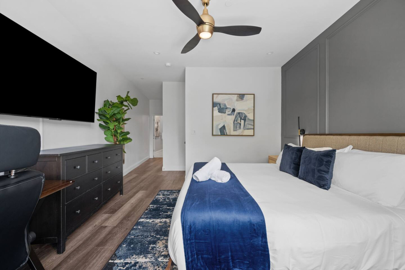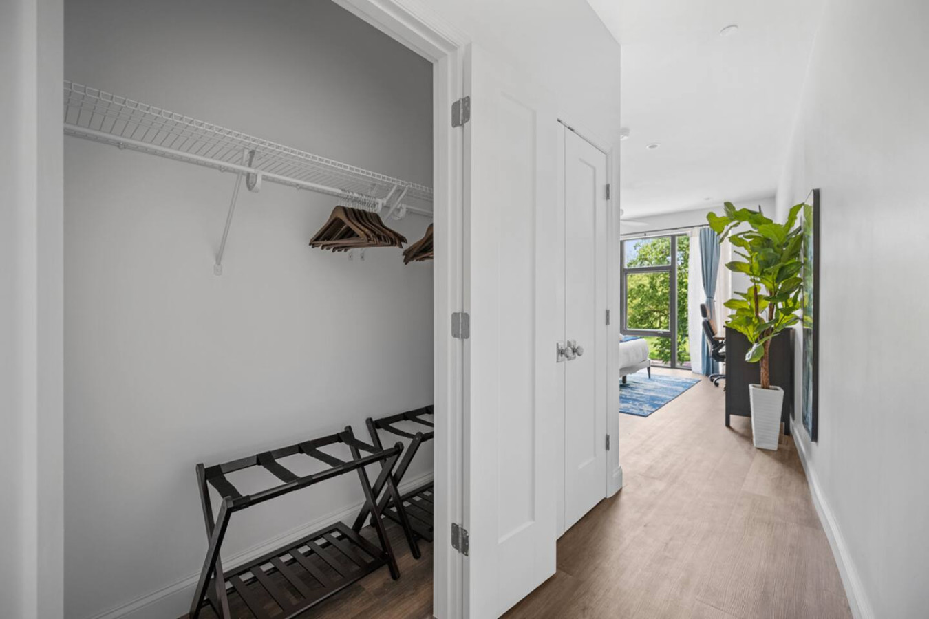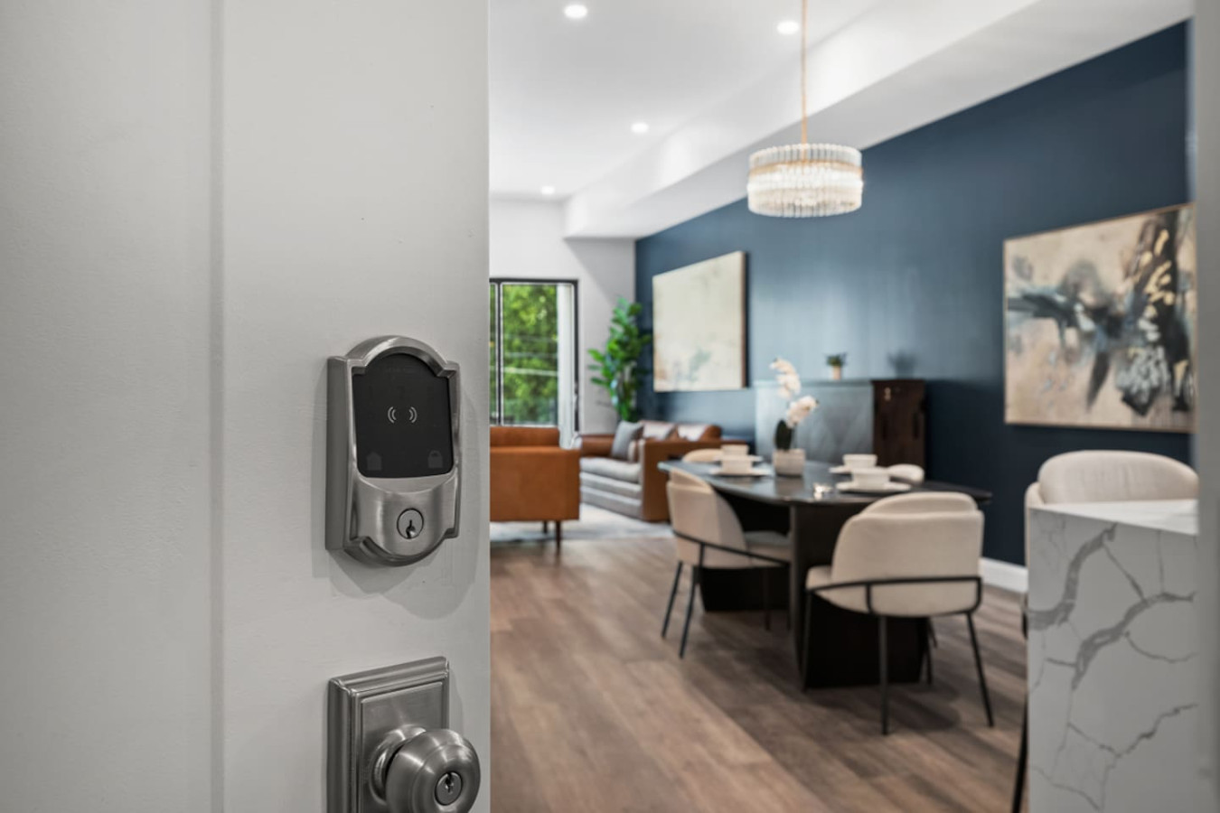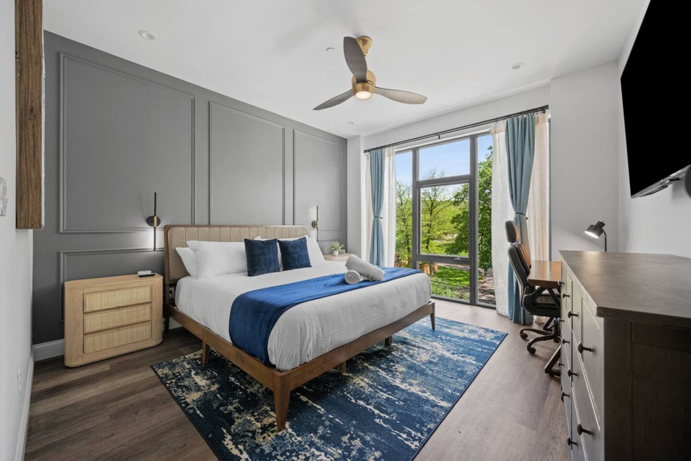 / nightEnjoy our immaculate 2 BR Penthouse suite on Butler Street, right in the heart of Lawrenceville. This is a brand new construction building in 2025. Just steps away from several local shops, cafes, and dining options in one of Pittsburgh’s most vibrant neighborhoods. ⭐2 King Beds (memory foam mattresses) ⭐1 Queen Sleeper sofa + 1 Queen Murphy Bed + Pack N Play ⭐Rooftop Deck w/ City view ⭐Free in-unit washer/dryer ⭐Free off-street parking ⭐Desk with speedy wifi ⭐24/7 guest support Please note: This apartment is accessible only by stairs. You’ll need to climb two full flights, and there is no elevator in the building. Welcome to our immaculate 2-bedroom penthouse suite, nestled on vibrant Butler Street in the heart of Lawrenceville. This brand-new 2025 construction offers contemporary amenities and is just steps away from some of Pittsburgh’s most renowned establishments. Explore the vibrant Lawrenceville neighborhood with Parlor Dim Sum, The Abbey on Butler Street, and La Grassa Pizza just a short walk away. Catch a film at Row House Cinema, bowl at Arsenal Bowl, or visit the Roberto Clemente Museum—all within minutes. Allegheny Cemetery and Doughboy Square are also nearby, offering a glimpse into Pittsburgh’s rich history. Kitchen Area: As soon as you enter, you’ll be greeted by the open floor layout. To your left, you’ll find the fully equipped kitchen, featuring brand-new stainless steel appliances and ample countertop space for all your cooking needs. With plenty of cabinets and drawers, you’ll have plenty of storage for your essentials. The kitchen is equipped with a coffee maker, electric kettle, and other kitchen gadgets to make meal prep easy. There’s also a cozy 4-seater nook, perfect for enjoying meals or a cup of tea or coffee. Next to the kitchen, you’ll find a convenient half bath, adding an extra layer of comfort and convenience to the space. Dining Area: Next to the kitchen, you’ll find the dining area, featuring a 4-seater table perfect for meals with family or friends. It’s fully equipped with all the dining essentials, including plates, bowls, utensils, and glassware, making it easy to enjoy home-cooked meals. Living Area: Just beyond the dining area is the inviting living room, featuring two large sofas—one facing a big smart TV for easy viewing, and the other arranged for casual conversation. One of the sofas conveniently converts into a sleeper sofa for additional sleeping arrangements. There’s also a queen-sized Murphy bed in the living area for added comfort. A cozy single chair offers an extra spot to relax. Step out from the living area onto the deck, where comfortable seating invites you to enjoy the sun or unwind with a cup of coffee. Let’s head upstairs to the next level of this stunning space! Bedroom 1: Upstairs, you’ll find the first bedroom featuring a king-sized bed with a plush memory foam mattress. Bathed in natural light from a large glass window, this elegant space offers a cozy and refined retreat. A wall-mounted smart TV is positioned directly across from the bed for effortless entertainment. You’ll find ample storage with a spacious closet and dresser, along with a dedicated desk perfect for work or study. The en suite bathroom adds to the luxury, featuring a sleek standing shower with a premium showerhead, dual vanity sinks with stylish mirrors, and all the essentials—including shampoo, conditioner, and body wash. Hallway: Leaving the first bedroom and walking across the hallway, you’ll find a dedicated study nook with a desk—perfect for working or studying in peace. Just steps away is the laundry room, complete with an in-unit washer and dryer for added convenience during your stay. Bedroom 2: At the end of the hallway, you’ll find the second bedroom, featuring a king-sized bed with a plush memory foam mattress. This elegant and beautifully designed room is filled with natural light from a large window and offers ample storage with a spacious closet. The en suite bathroom includes a stylish vanity with a large mirror, a luxurious showerhead, a relaxing tub, and all the essential for a comfortable stay. Deck: Finally, let’s head upstairs to the stunning rooftop deck. With plenty of seating, including a cozy outdoor sofa, it’s the perfect place to unwind, soak up the sun, and take in the amazing view of Lawrenceville. Things to note: Pets: Pets are welcome for a small fee of $25 per pet/per stay. Washer/Dryer: Guests have access to a convenient in-unit washer and dryer, free of charge, making laundry a hassle-free part of your stay. Stairs: Please note, this apartment is only accessible by stairs—guests must climb two full flights to enter, as there is no elevator in the building. Inside the apartment, you’ll also need to climb one set of stairs to reach the bedrooms and another set to access the rooftop deck.