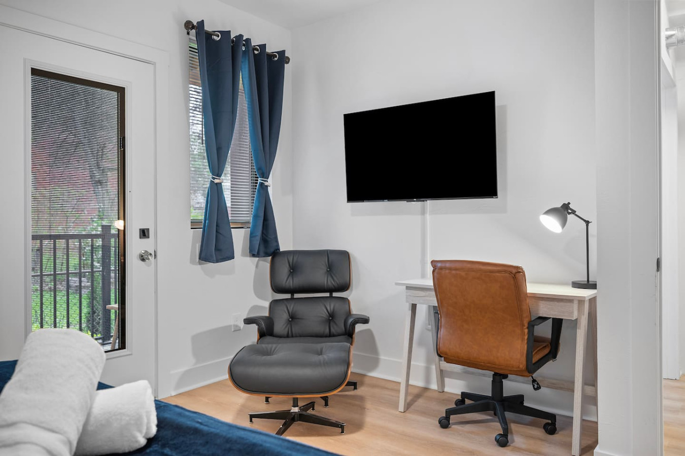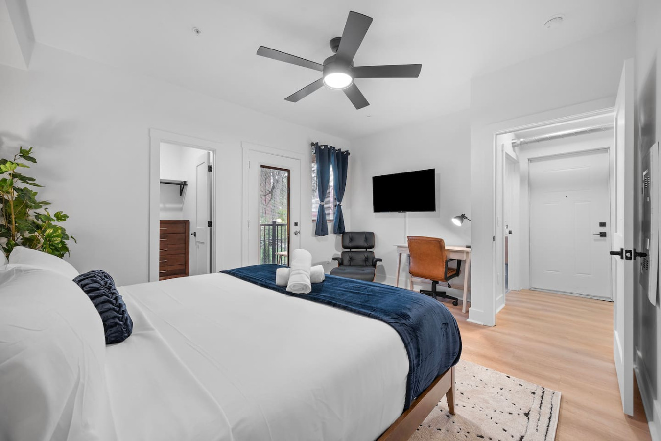 / nightStep into our immaculate 3 BR suite on on S Highland Ave, right in the heart of Shadyside. This is a brand new construction building in 2025 with a modern design, ultra-comfortable beds, and two private decks. This apartment is just steps away from several shops, cafes, and dining options in one of Pittsburgh’s most vibrant neighborhoods. ⭐4 Beds (2 King / 2 Fulls) ⭐Twin Rollaway bed +Pack N Play crib ⭐Free off-street parking ⭐Free washer/dryer ⭐Desk with speedy WiFi ⭐24/7 guest support Step into our inviting 3-bedroom suite, ideally located in the heart of Shadyside. With modern comfort and unbeatable convenience, this spacious retreat offers easy access to all that Pittsburgh has to offer. Vibrant shops and cafes in Shadyside are just 0.4 miles away, a quick 7-minute walk. Explore Carnegie Mellon University, only 1.5 miles away, a brief 5-minute drive. Enjoy Downtown Pittsburgh’s lively attractions just 14 minutes away by car. Master Bedroom: Once you enter, you’ll be welcomed by the master bedroom, featuring an elegant design and spacious layout. It offers a luxurious king-sized bed for ultimate comfort, large closets for ample storage, and a 50-inch mounted TV for entertainment. There’s also a dedicated workspace and access to a private deck that is fully furnished for relaxation. First Bathroom: Next to the master bedroom is the first bathroom, showcasing an elegant design with a stylish bowl sink and vanity mirror. The spacious standing shower features a luxurious rainfall showerhead and is fully stocked with essential amenities for your convenience. Along the hallway, you’ll find the in-unit washer and dryer, offering the convenience of fresh laundry at your fingertips during your stay. Second Bedroom: The second bedroom is thoughtfully designed for both comfort and functionality. It features two full-sized beds, both of which have memory foam mattresses. There are black out curtains, white noise machines, and USB charging ports by the bed for added convenience to ensure a good nights sleep. There is also a closet with ample space for use during your stay. Second Bathroom: The second bathroom, located next to the second bedroom, is beautifully designed and fully equipped with bathroom essentials. It also features a relaxing tub, ideal for unwinding and enjoying a soothing bath after a long day. Third Bedroom: The third bedroom features a luxurious king-sized bed for ultimate comfort, a 43-inch mounted TV for entertainment, and ample storage with a closet and dresser, ensuring a restful and organized stay. Kitchen: At the end of the hallway, the kitchen awaits, featuring brand new stainless steel appliances including a fridge, oven, stove, microwave, and dishwasher. This modern, fully equipped space is perfect for preparing meals with ease during your stay. Living Area/Dining Area: The open floor plan seamlessly connects the living area, dining area, and kitchen, creating a spacious and inviting atmosphere. Central to the living room is a super comfortable leather sofa along with an arm chair for additional seating and relaxing. Next to the kitchen, the dining area is fully equipped with everything you need, from utensils to plates. Adjacent to the dining area is a comfy sofa, perfectly positioned in front of a 55-inch mounted TV for ultimate relaxation. Front Deck: Step outside to the front deck from the living area, which is fully furnished with two arm chairs and side table, offering a perfect spot to unwind and enjoy the fresh air. Things to note: Parking: We have one free off-street parking space for this apartment located at the back of the building. It's a little tight accessing off of the alley way, so larger vehicles may be easier to park on the street. We can offer street parking for additional vehicles as well at no charge. Pets: Pets are welcome for a small fee of $25 per stay. Washer/Dryer: Guests have access to a convenient in-unit washer and dryer, free of charge, making laundry a hassle-free part of your stay.