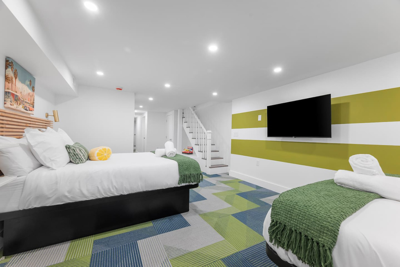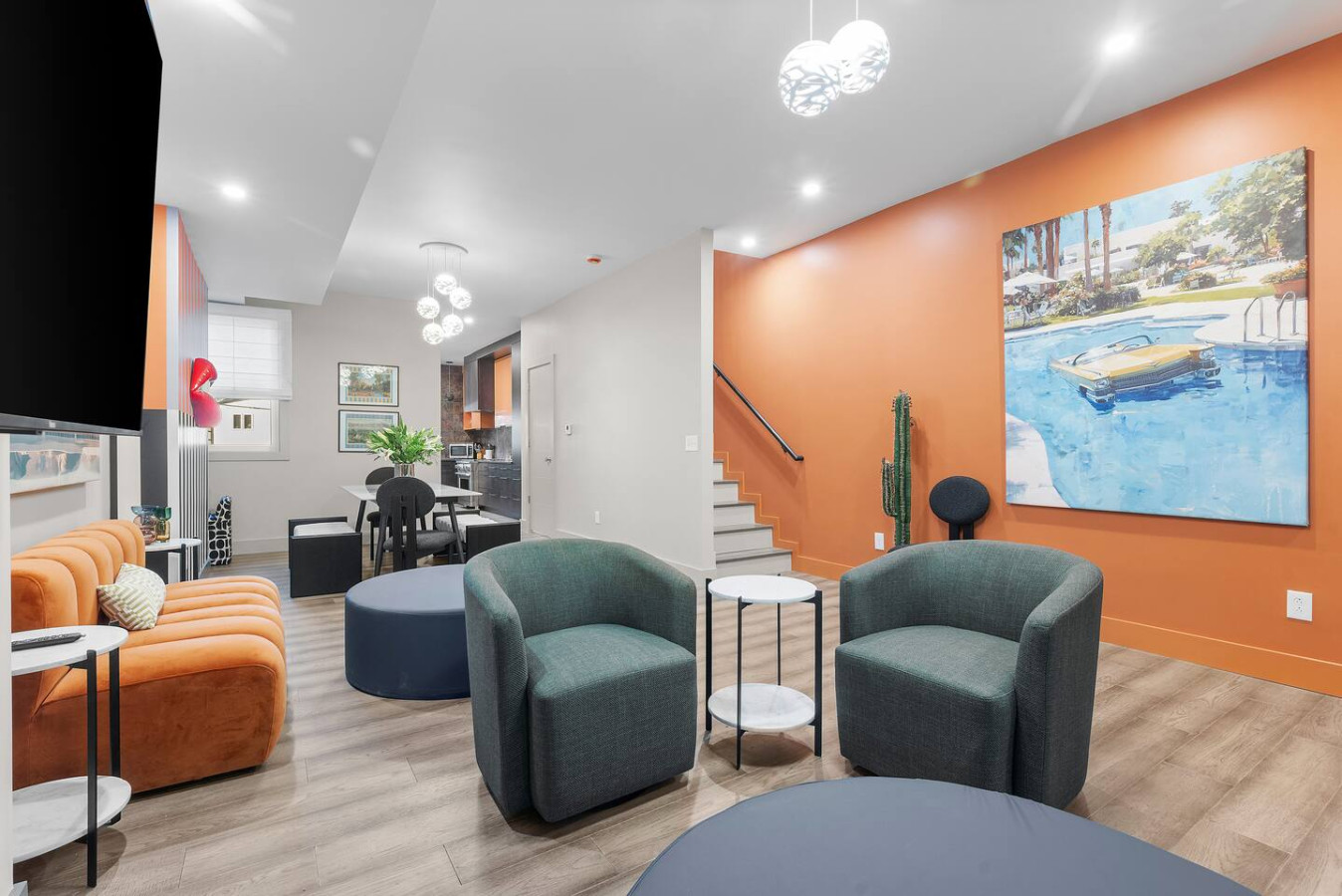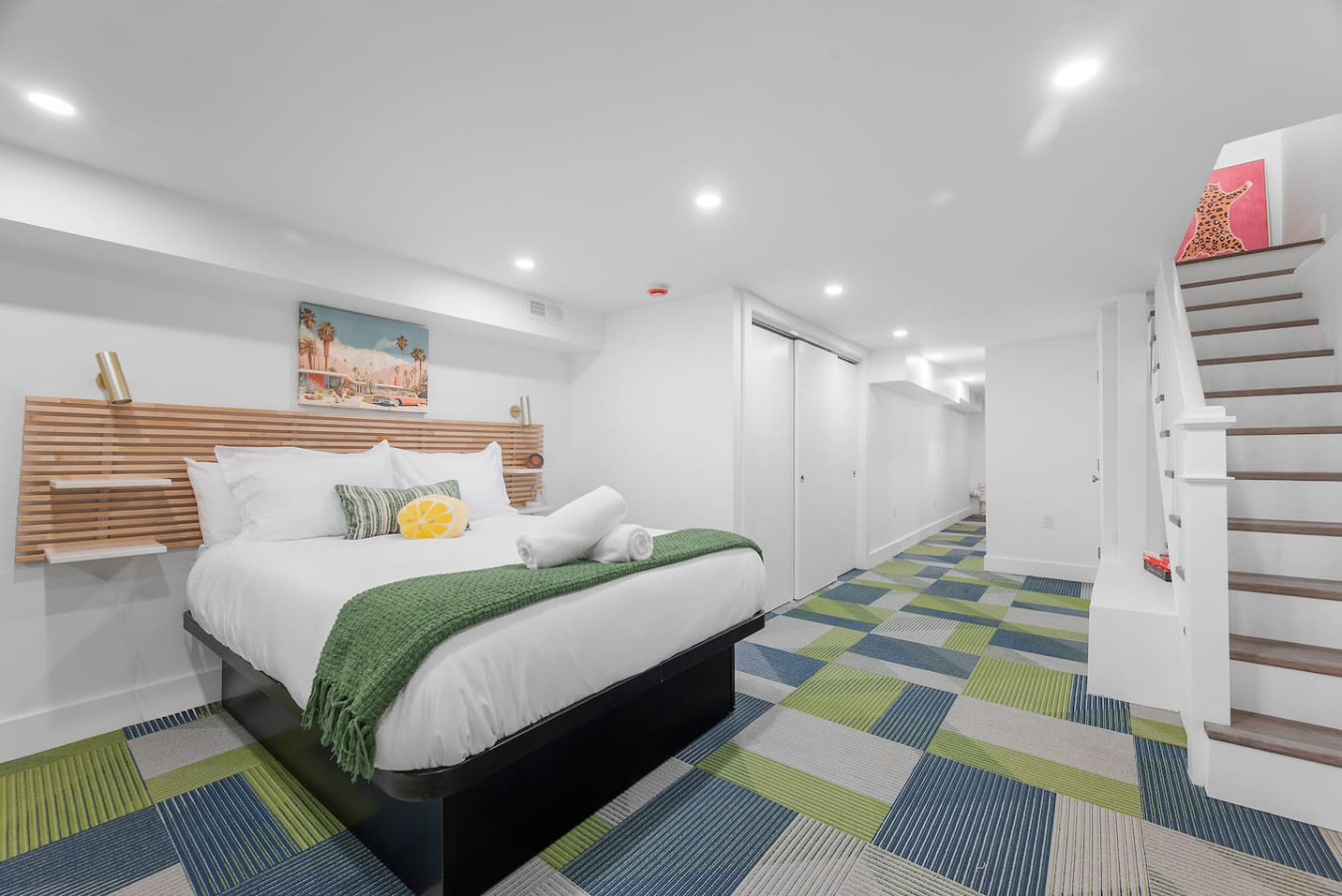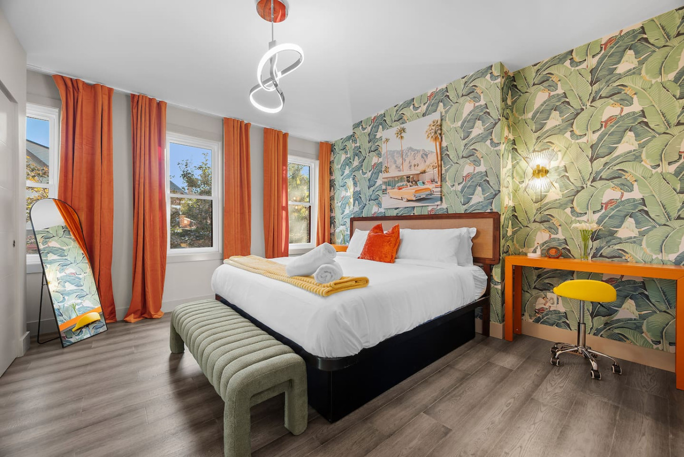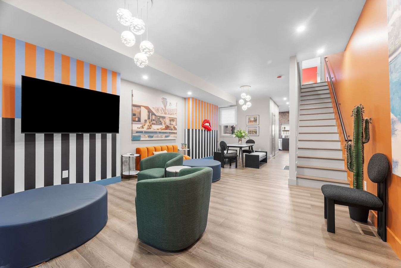 / nightStep into a vibrant Palm Springs–inspired retreat where bold colors, modern design, and playful energy meet. This designer home perfectly located in the heart of Shadyside features curated art and boutique-hotel finishes throughout. With 4 bedrooms and 4.5 bathrooms across 4 stories, there's plenty of space for large groups! ⭐5 beds (2 King / 3 Queen) ⭐Pack n' play crib + High chair ⭐Free off-street parking ⭐Free Washer/ Dryer ⭐Private Deck ⭐24/7 Support before, during and after your stay