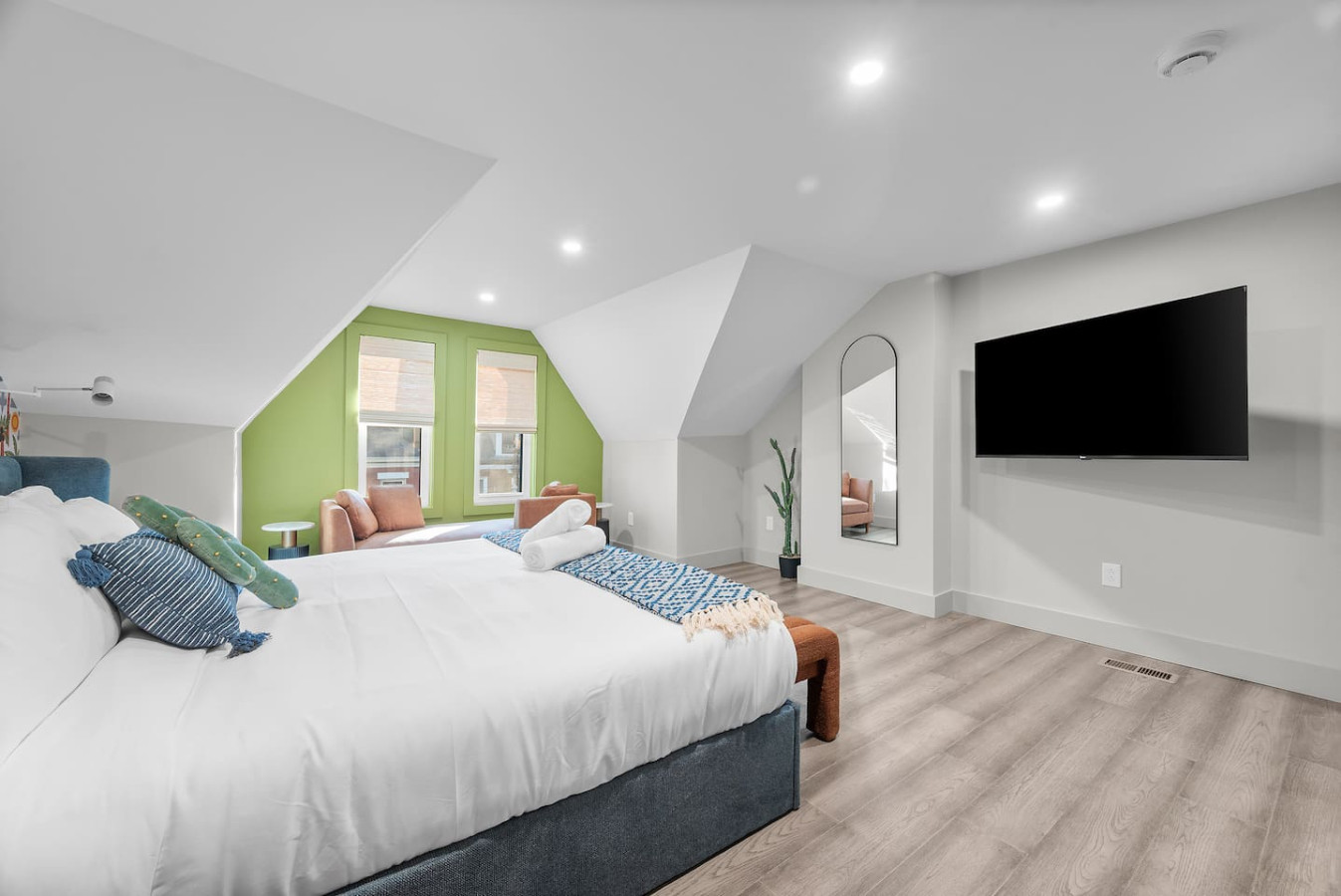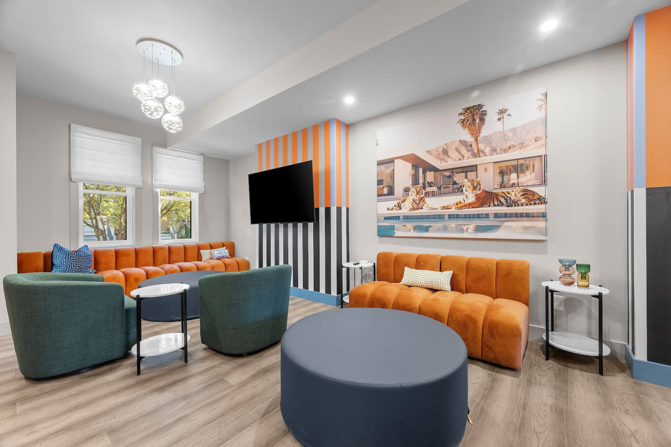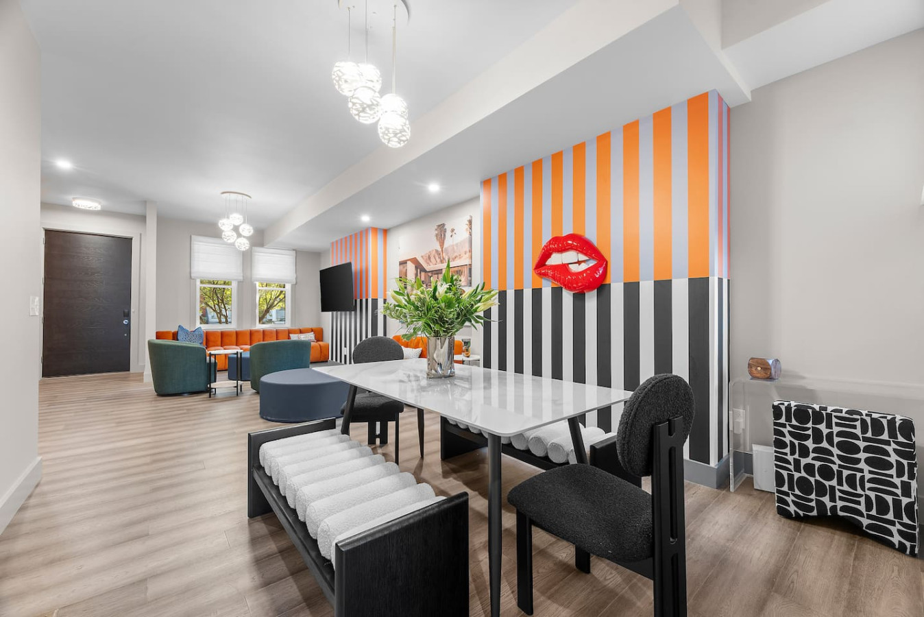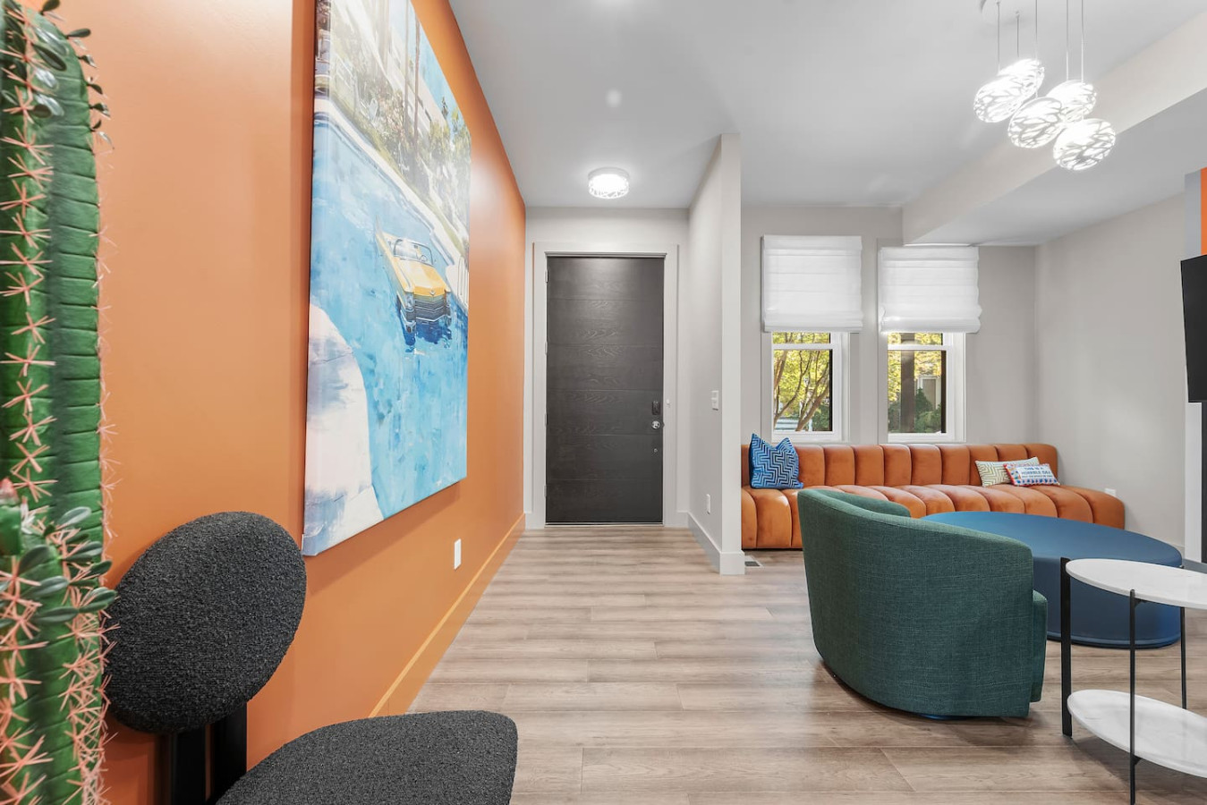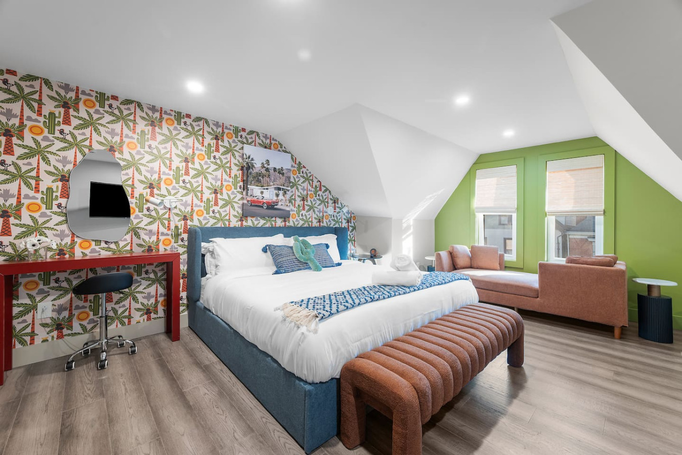 / nightStep into a vibrant Palm Springs–inspired retreat where bold colors, modern design, and playful energy meet. This designer home perfectly located in the heart of Shadyside features curated art and boutique-hotel finishes throughout. With 4 bedrooms and 4.5 bathrooms across 4 stories, there's plenty of space for large groups! ⭐5 beds (2 King / 3 Queen) ⭐Pack n' play crib + High chair ⭐Free off-street parking ⭐Free Washer/ Dryer ⭐Private Deck ⭐24/7 Support before, during and after your stay