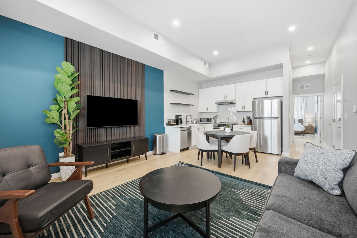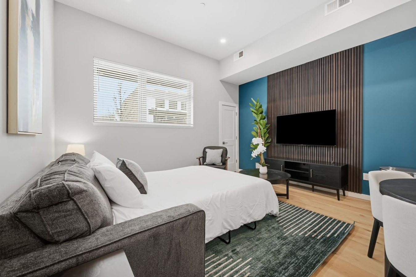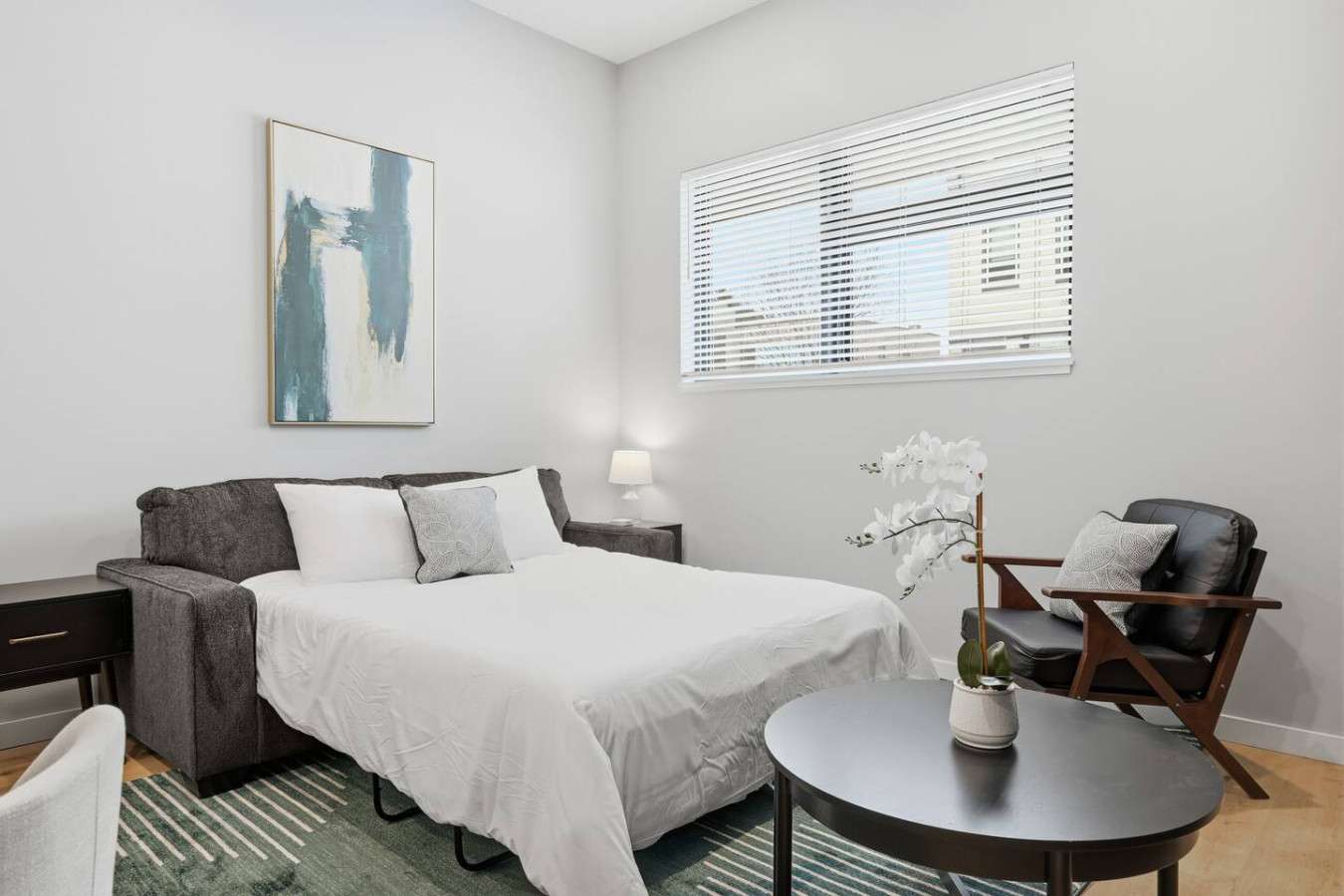 / nightEnjoy a stay in this brand new construction at The Madison on Penn, a boutique 8-unit building that is centrally located in Bloomfield. Just a short walk to UPMC Children’s Hospital and West Penn Hospital, this modern building is ideal for both short and extended stays. -1 King Bed (BR) -1 Queen Sleeper Sofa (LR) -Free off-street parking -Shared gym with sauna & exercise equipment -Free in-unit washer/ dryer -Desk with speedy wifi -24/7 guest support