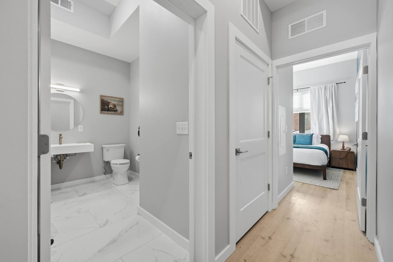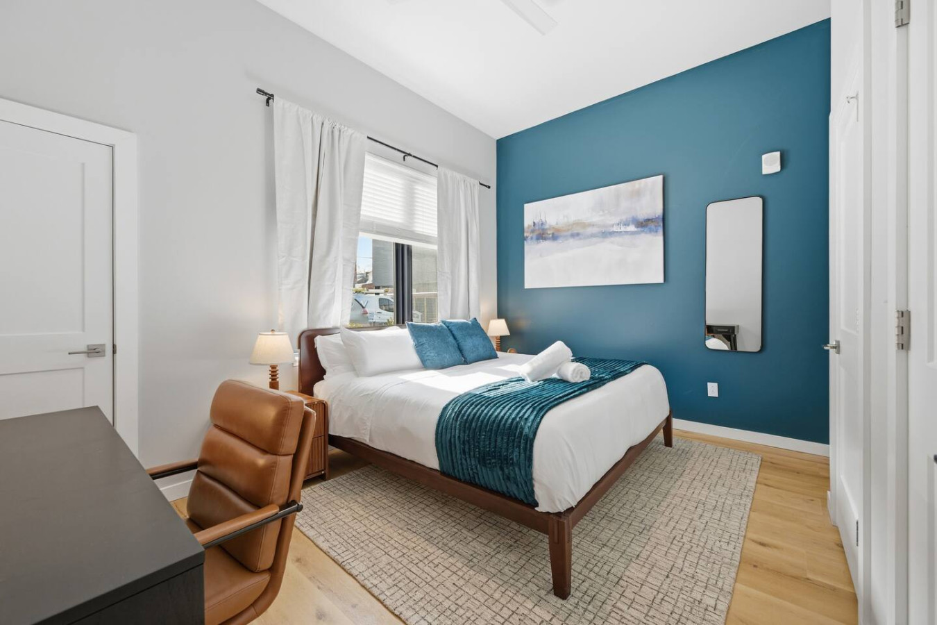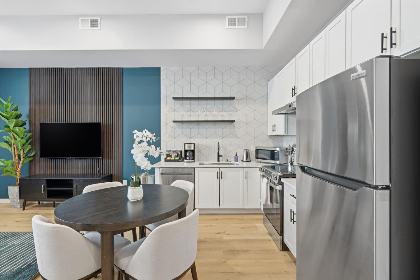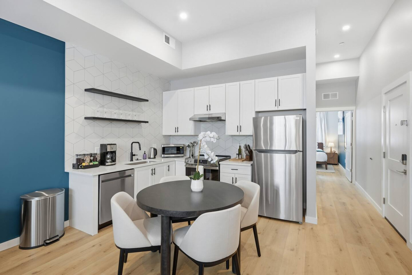 / nightEnjoy a stay in this brand new construction at The Madison on Penn, a boutique 8-unit building that is centrally located in Bloomfield. Just a short walk to UPMC Children’s Hospital and West Penn Hospital, this modern building is ideal for both short and extended stays. -1 King Bed (BR) -1 Queen Sleeper Sofa (LR) -Free off-street parking -Shared gym with sauna & exercise equipment -Free in-unit washer/ dryer -Desk with speedy wifi -24/7 guest support