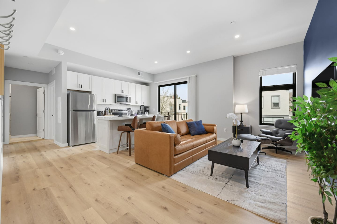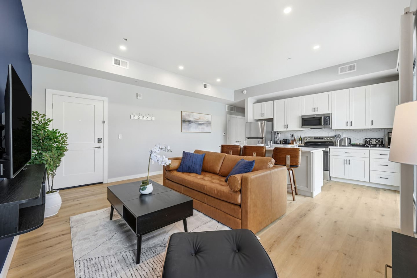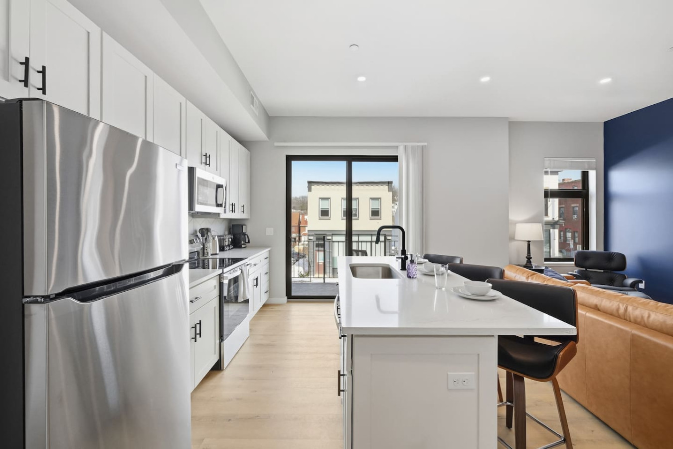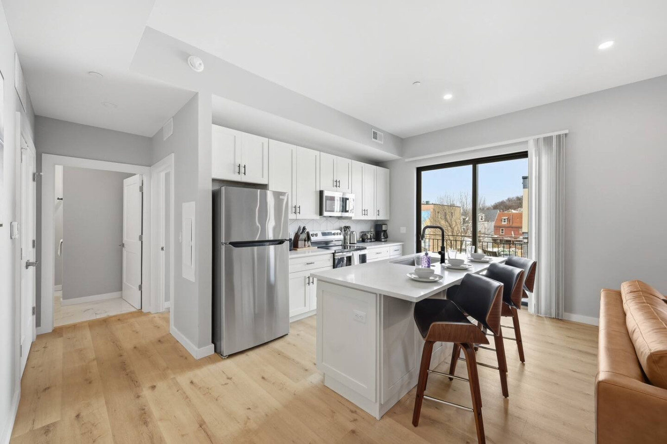 / nightEnjoy a stay in this brand new construction at The Madison on Penn, a boutique 8-unit building that is centrally located in Bloomfield. Just a short walk to UPMC Children’s Hospital and West Penn Hospital, this modern building is ideal for both short and extended stays. -1 Queen Bed (BR) -1 Queen Sleeper Sofa (LR) -Free off-street parking -Large private deck (Sofa + dining set) -Shared gym with sauna & exercise equipment -Free in-unit washer/ dryer -Desk with speedy wifi -24/7 guest support