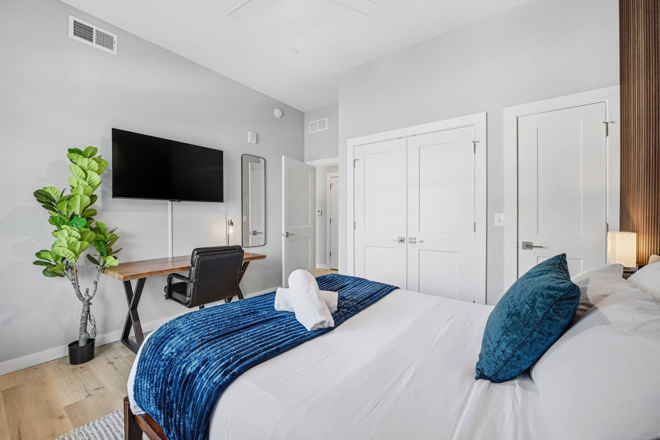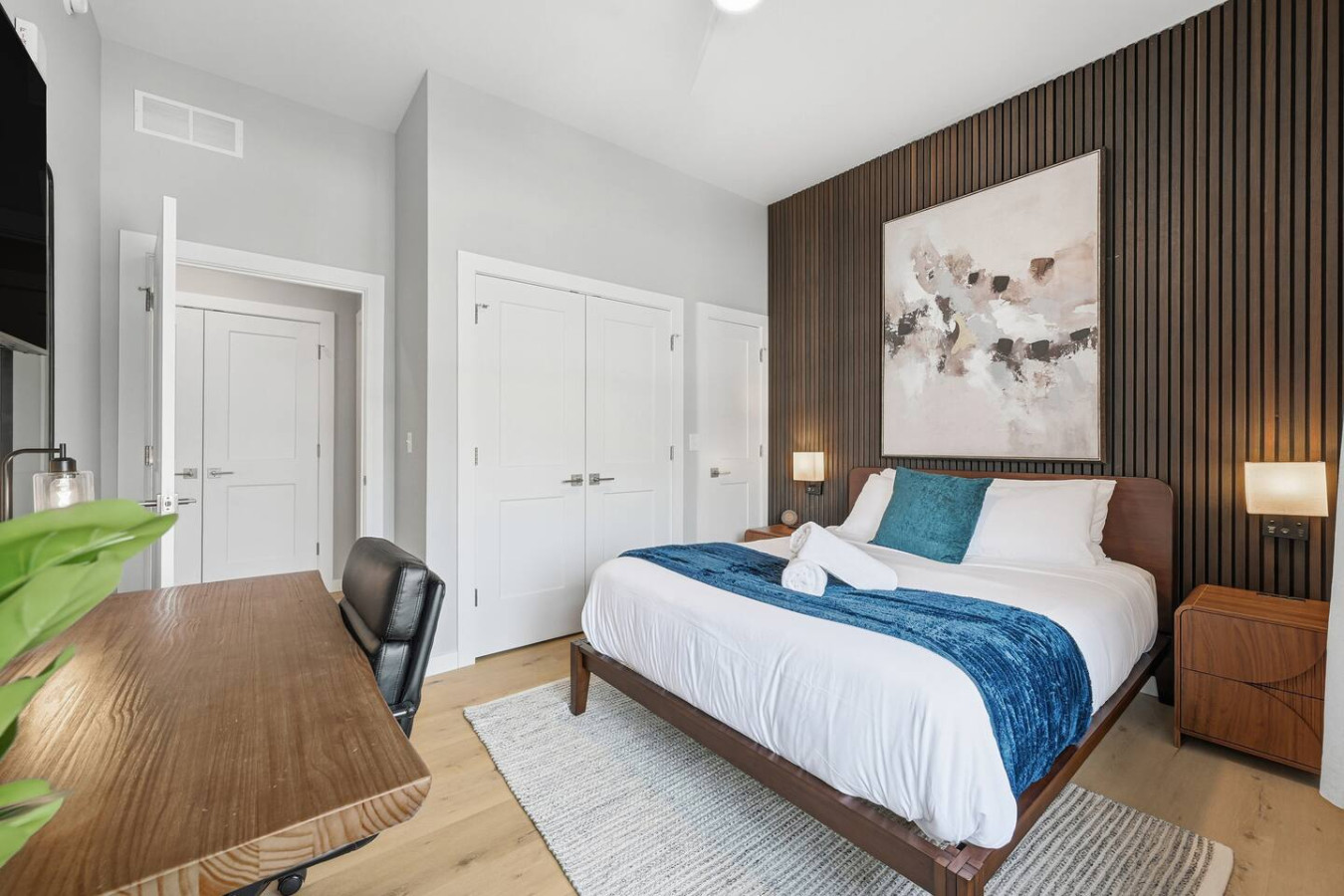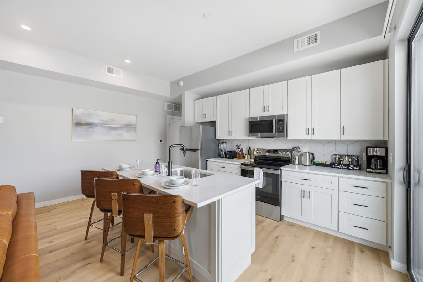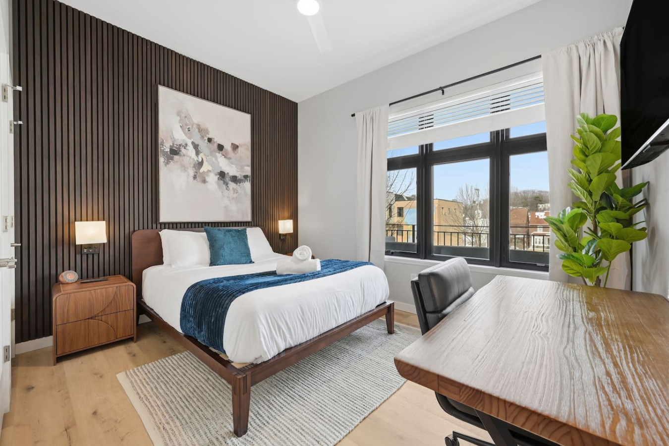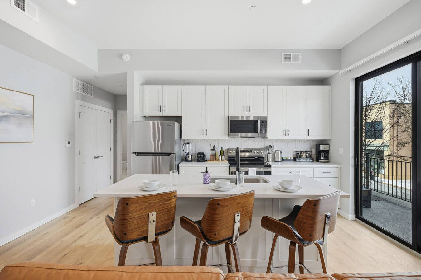 / nightEnjoy a stay in this brand new construction at The Madison on Penn, a boutique 8-unit building that is centrally located in Bloomfield. Just a short walk to UPMC Children’s Hospital and West Penn Hospital, this modern building is ideal for both short and extended stays. -1 Queen Bed (BR) -1 Queen Sleeper Sofa (LR) -Free off-street parking -Large private deck (Sofa + dining set) -Shared gym with sauna & exercise equipment -Free in-unit washer/ dryer -Desk with speedy wifi -24/7 guest support