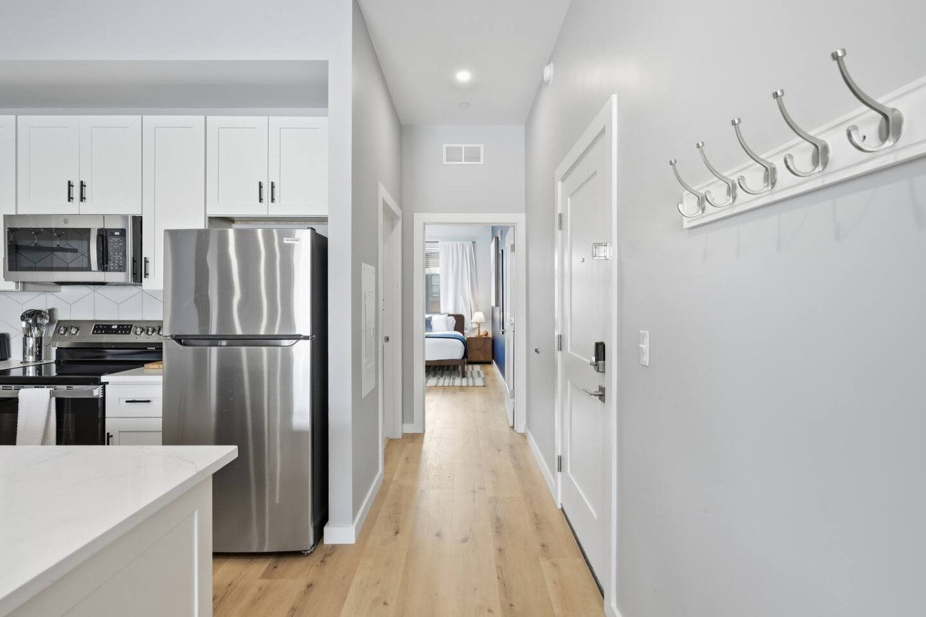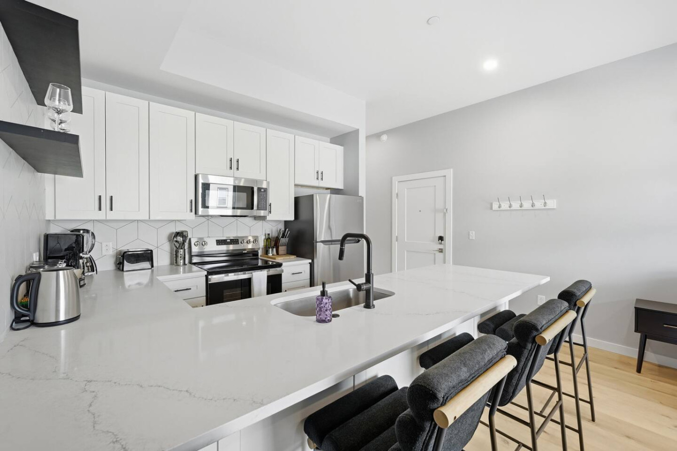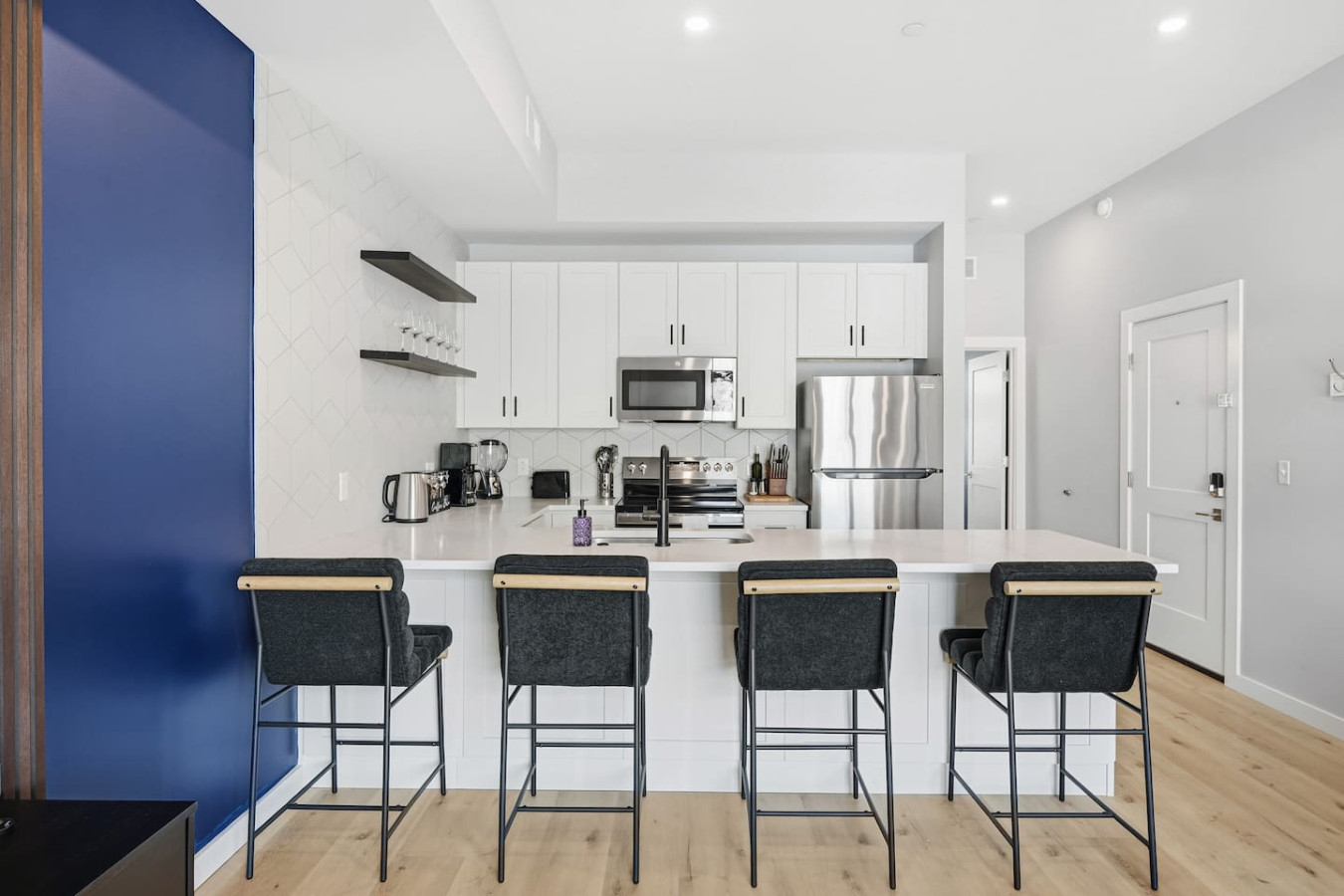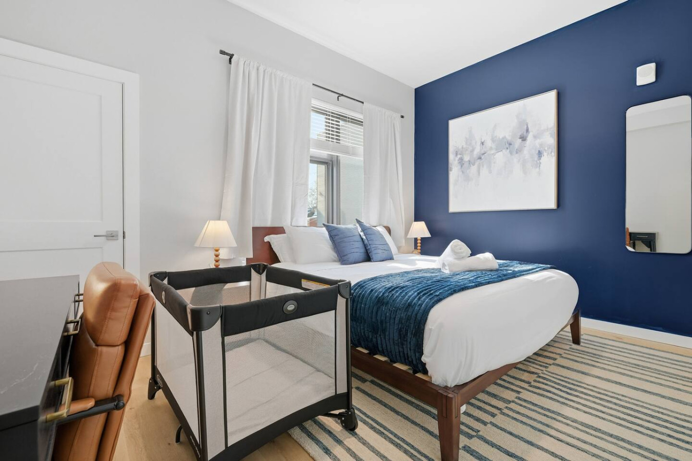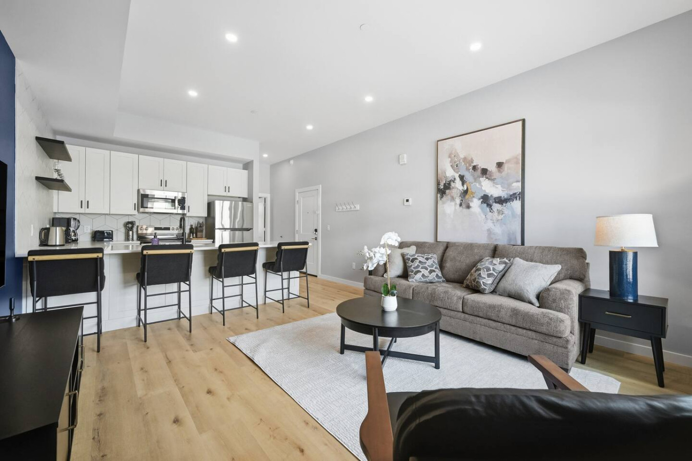 / nightEnjoy a stay in this brand new construction at The Madison on Penn, a boutique 8-unit building that is centrally located in Bloomfield. Just a short walk to UPMC Children’s Hospital and West Penn Hospital, this modern building is ideal for both short and extended stays. -1 King Bed (BR) -1 Queen Sleeper Sofa (LR) -Free off-street parking -Shared gym with sauna & exercise equipment -Free in-unit washer/ dryer -Desk with speedy wifi -24/7 guest support