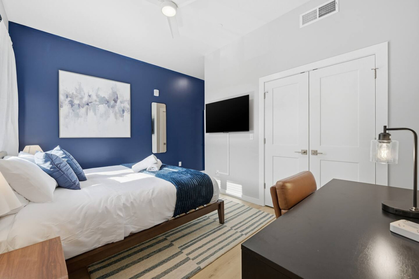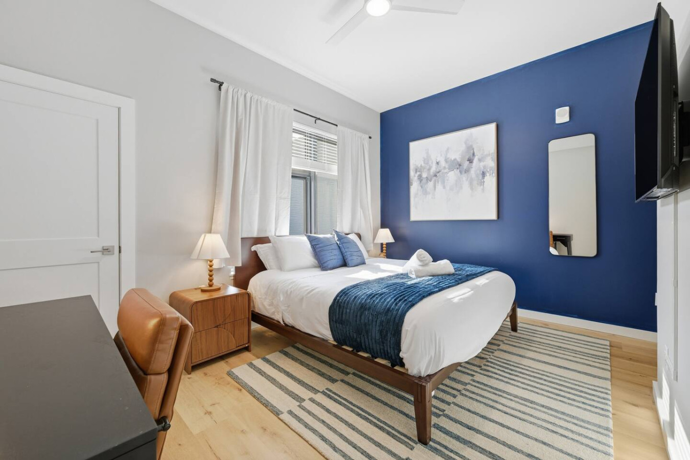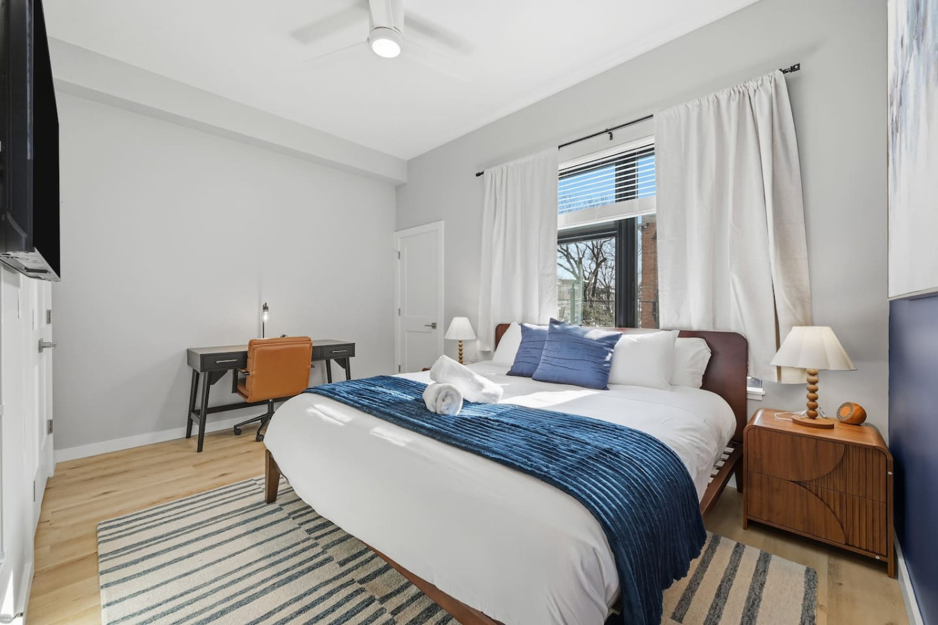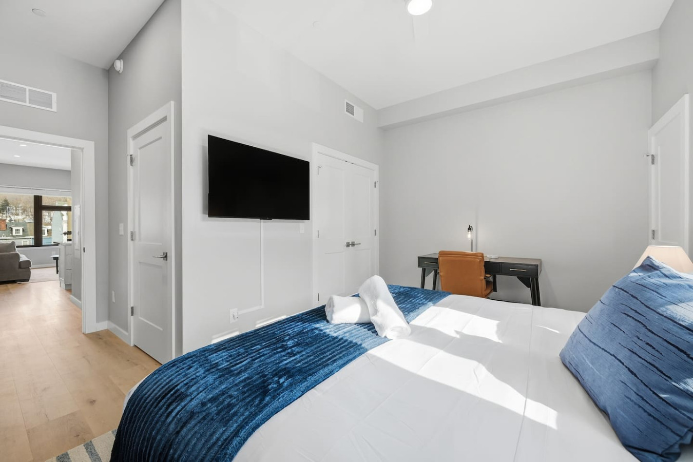 / nightEnjoy a stay in this brand new construction at The Madison on Penn, a boutique 8-unit building that is centrally located in Bloomfield. Just a short walk to UPMC Children’s Hospital and West Penn Hospital, this modern building is ideal for both short and extended stays. -1 King Bed (BR) -1 Queen Sleeper Sofa (LR) -Free off-street parking -Shared gym with sauna & exercise equipment -Free in-unit washer/ dryer -Desk with speedy wifi -24/7 guest support