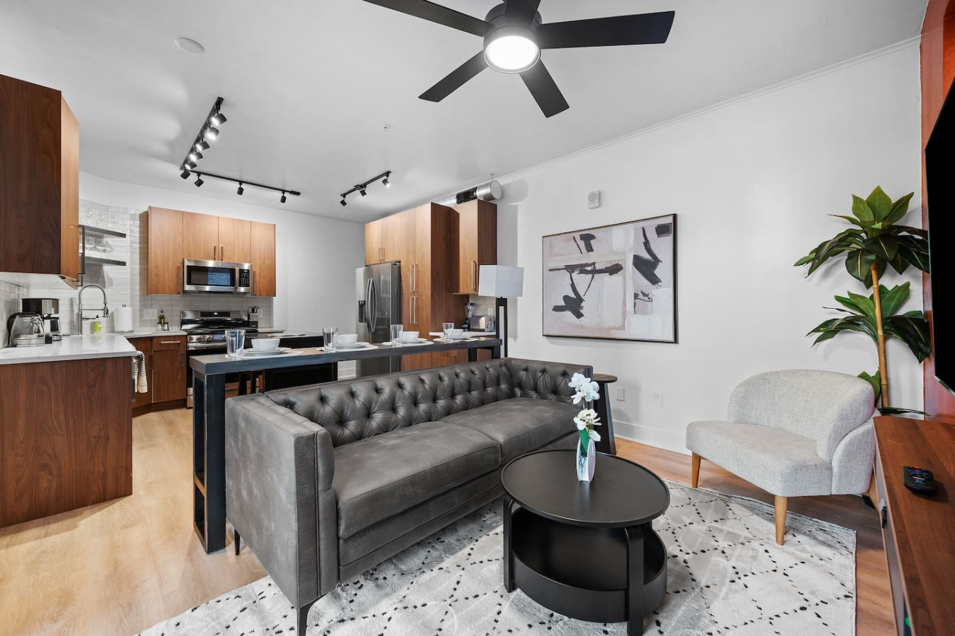 / nightEnjoy our pristine 3BR suite on S Highland Ave, right in the heart of Shadyside. This is a brand new construction building in 2025 with a modern design and ultra-comfortable beds. Located just steps away from shops, cafes, and dining options in one of Pittsburgh’s most vibrant neighborhoods. ⭐3 beds (2 King & 1 Queen w/ memory foam mattresses) ⭐Twin Rollaway bed + Pack N Play crib ⭐Free off-street Parking ⭐Free in-unit washer/dryer ⭐24/7 guest support ⭐Fully ADA accessible - No steps to enter Step into our pristine Double King 3BR suite, ideally located in the vibrant Shadyside neighborhood. This spacious suite blends modern comfort with unbeatable convenience, offering easy access to all that Pittsburgh has to offer. Shadyside’s lively shops and cafes are just 0.4 miles away, a quick 7-minute walk. Explore the campus life of Carnegie Mellon University, only 1.5 miles away, a brief 5-minute drive. Downtown Pittsburgh’s attractions are just a 14-minute drive away. Master Bedroom: Once you enter, you’ll be greeted by the master bedroom, featuring an elegant design with a spacious layout. It includes a king-sized bed for ultimate comfort, large closets, a 50-inch mounted TV for entertainment, blending relaxation and productivity. First Bathroom: Next to the master bedroom is the first bathroom, featuring an elegant design with a stylish bowl sink and a vanity mirror. The luxurious standing shower is equipped with a high-end showerhead and is fully stocked with essential amenities for your convenience. This bathroom is fully ADA accessible with no steps to access shower as well as grab bars in the shower. Along the hallway, you’ll find the in-unit washer and dryer, offering the convenience of fresh laundry at your fingertips during your stay. Second Bedroom: The second bedroom boasts 1 queen bed along with a dresser and 30" writing desk for any working needs during your stay. It’s a comfortable and practical retreat for guests. Second Bathroom: The second bathroom, located next to the second bedroom, is beautifully designed and fully equipped with bathroom essentials. It also features a relaxing tub, perfect for unwinding after a long day. Third Bedroom: The third bedroom boasts a king-sized bed for ultimate comfort, a 43-inch mounted TV for entertainment, and plenty of storage with a closet and dresser, making it a perfect retreat for relaxation. Kitchen: At the end of the hallway, you’ll enter the kitchen, fully equipped with brand new stainless steel appliances, including a fridge, oven, stove, microwave, and dishwasher. It’s a modern, functional space perfect for preparing meals during your stay. Living Area/Dining Area: The open floor plan seamlessly connects the living area, dining area, and kitchen, creating a spacious and inviting atmosphere. Next to the kitchen, the dining area is fully equipped with everything you need, from utensils to plates. Adjacent to the dining area is a comfy sofa, perfectly positioned in front of a 55-inch mounted TV for ultimate relaxation. Deck: Step outside to the deck from the living area, which is fully furnished with a sofa, coffee table and two chairs, offering a perfect spot to unwind and enjoy the fresh air. Things to note: Pets: Pets are welcome for a small fee of $25 per stay. Free Parking: We have one dedicated parking space at the rear of the building for this apartment. The parking lot is a little tight so we do not recommend larger vehicles, however a truck can fit in this space if parked properly. You are also welcome to register any additional vehicles for street parking for free, which we will provide instructions for. Washer/Dryer: Guests have access to a convenient in-unit washer and dryer, free of charge, making laundry a hassle-free part of your stay.