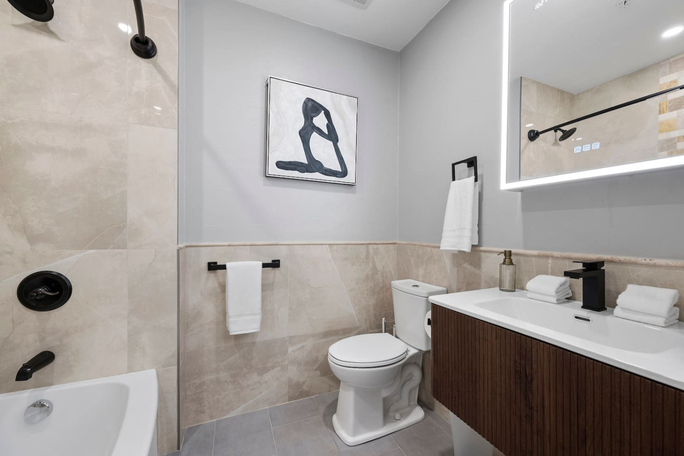 January 2026 5.00We are traveling with three children, this apartment was perfect for us. The beds were super comfy, with lots of pillows and great comforters. Very clean, and looked to be newly renovated apartment. Both bathrooms were great. We loved the neighborhood and found several restaurants and coffee shops close by to walk to. We would love to stay again next time we are traveling into town.