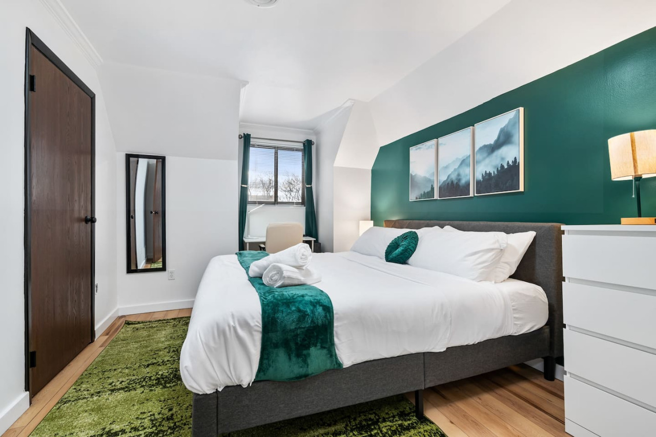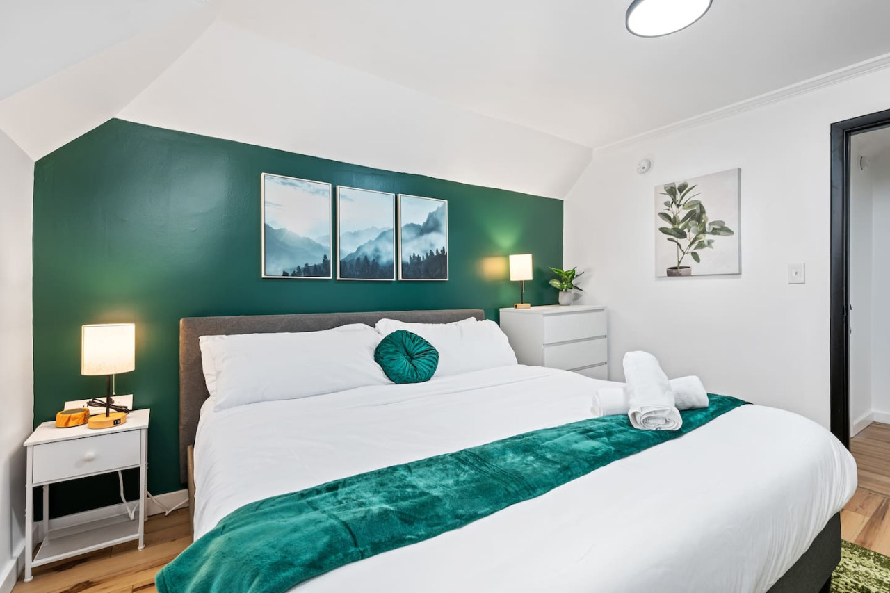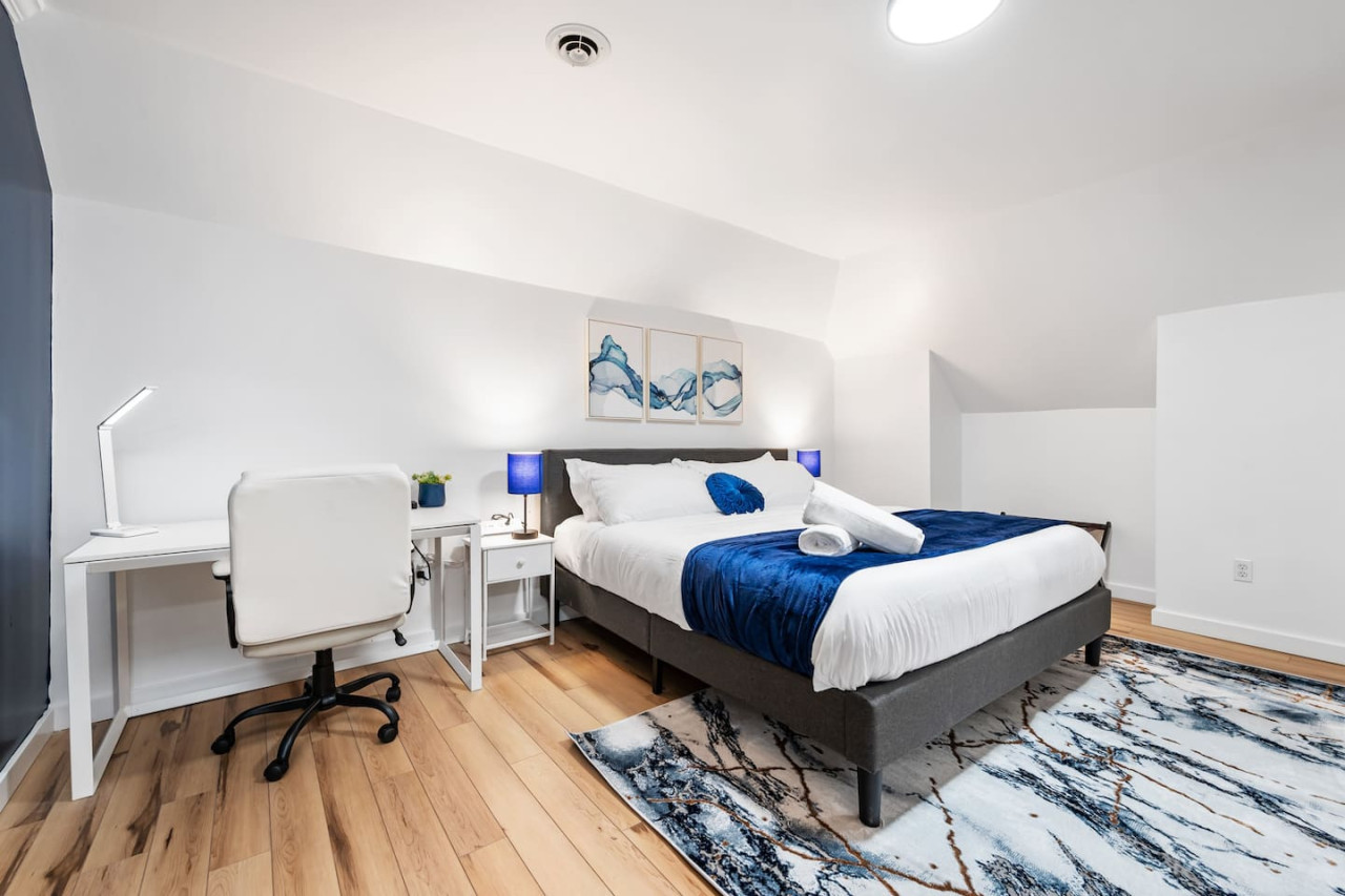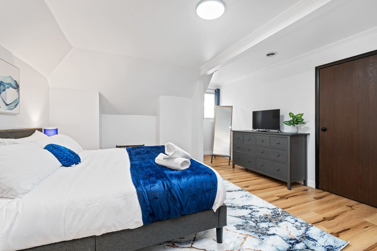 September 2025 5.00Jake was extremely responsive as we were deciding on a place to stay. The place was very comfortable. The access does come with several steep steps to the 3rd floor, so I would not recommend for those that have mobility issues. The floors inside the unit are sloped so it feels a little off. There was some noise from downstairs tenants. Besides that everything was well appointed. Convenient location