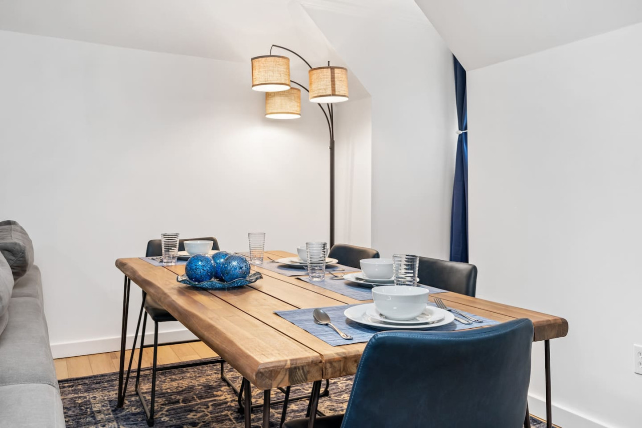 September 2025 5.00This is a lovely and spacious apartment inside. Everything was spotless and we appreciated all the complementary items including bath products, laundry, coffee, and a white noise machine. It’s located on a busy street that looks a bit industrial but it’s very well located to get around by car and if you walk just a block toward Shadyside you are in a nice residential neighborhood. We didn’t have any issues with street noise, either from the street or from the tenants downstairs. This is a great option for groups or families who want privacy but want a communal space to hang out too. The beds were also very comfortable! I put only 4/5 for value because I found it expensive, but the price was in line with hotels at the time of our trip, since there were Pitt and Steelers games happening (unfortunately for us).