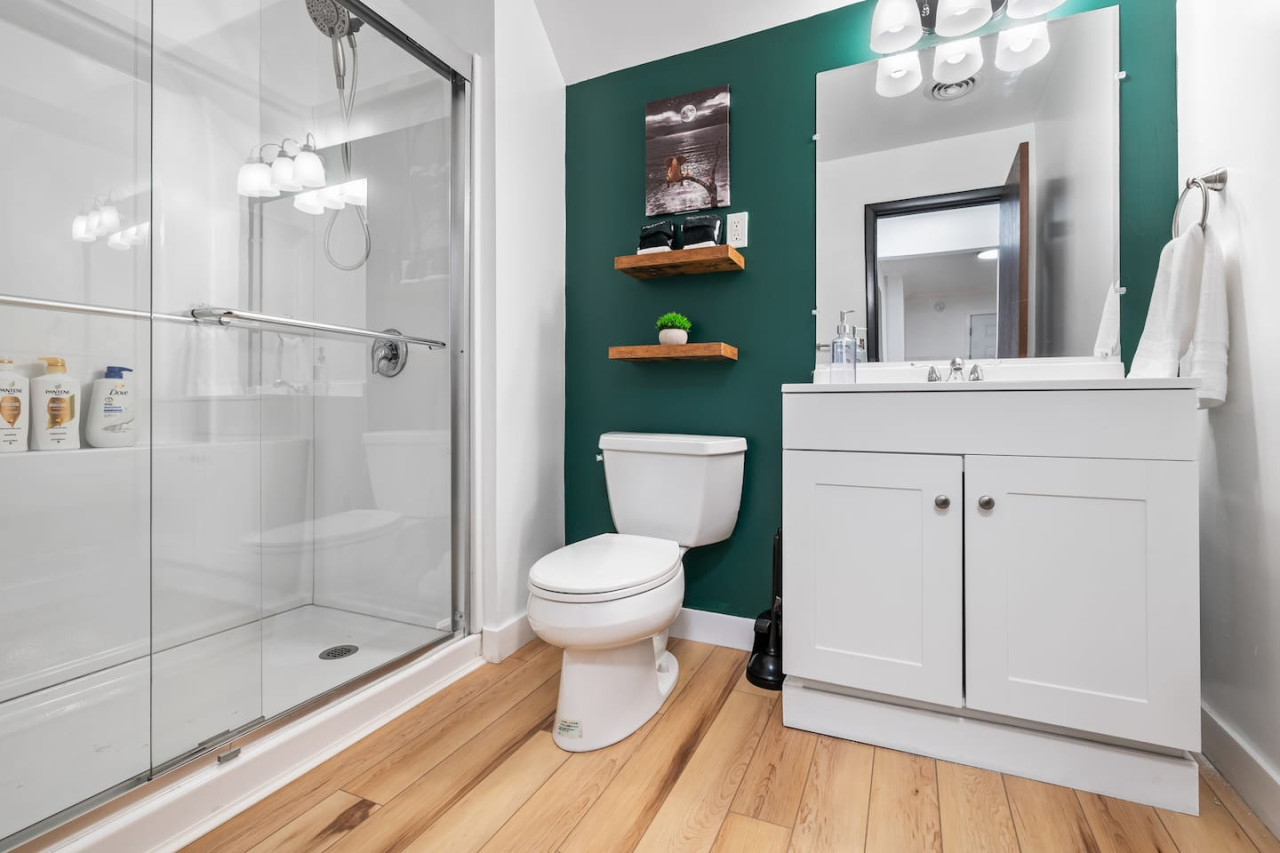 June 2024 5.00This rental was easy to find, affordable, comfortable, and looked just like the pictures! My fiancé and I enjoyed the area as it was right across from a coffee shop and close to downtown areas. The beds were a 5 star rating in themselves with the memory foam mattresses and we loved the fact there were fleece blankets as an option separate from the comforter/bedding. Also that there were white noise machines in both rooms! We were very happy with how dog friendly this rental was, and close to a park for the dogs. You could slightly hear the guests in the rental below us, but wasn’t too bad. If there’s anything I’d note is the shower was a bit slippery and it’s definitely a hike up 3 flights of stairs to get to the rental! We will definitely stay again though!