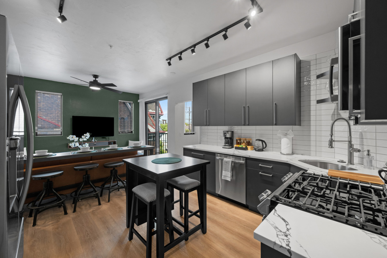 / nightEnjoy our immaculate 3 BR suite on S Highland Ave, right in the heart of Shadyside. This is a brand new construction building in 2025 with a modern design, ultra-comfortable beds, and two private decks. This apartment is just steps away from several local shops, cafes, and dining options in one of Pittsburgh’s most vibrant neighborhoods. ⭐1 King Bed / 2 Queen bed (memory foam mattresses) ⭐Twin Rollaway bed + Pack N Play ⭐Free in-unit washer/dryer ⭐3 Desks with speedy WiFi ⭐24/7 guest support Please Note: This unit is located on the 3rd floor of a classic walk-up building and you must walk up 3 flights of stairs (6-7 half flights- approximately 48 stairs total). There is no elevator, so it may not be ideal for guests with mobility concerns, elderly travelers, or families with young children and strollers. That said, it offers a peaceful top-floor retreat with great light and privacy - and most guests say the walk up is absolutely worth it. If accessibility is a concern, we do have several beautiful units available on lower floors in the same building - feel free to reach out and we’d be happy to help you find the perfect fit. Discover our welcoming 3-bedroom suite, perfectly situated in the vibrant Shadyside neighborhood. This spacious getaway blends contemporary comfort with prime convenience, offering seamless access to everything Pittsburgh has to offer. Stroll just 0.4 miles (7 minutes) to Shadyside’s bustling shops and cafes, or take a short 5-minute drive to Carnegie Mellon University, just 1.5 miles away. Downtown Pittsburgh’s exciting attractions are a quick 14-minute drive from your doorstep. Master Bedroom: Once you enter, you’ll be welcomed by the master bedroom, featuring an elegant design and spacious layout. It offers a luxurious king-sized bed for ultimate comfort, large closets for ample storage, and a 50-inch mounted TV for entertainment. There’s also a dedicated workspace and access to a private deck that is fully furnished for relaxation. First Bathroom: Next to the master bedroom is the first bathroom, showcasing an elegant design with a stylish bowl sink and vanity mirror. The spacious standing shower features a luxurious rainfall showerhead and is fully stocked with essential amenities for your convenience. Along the hallway, you’ll find the in-unit washer and dryer, offering the convenience of fresh laundry at your fingertips during your stay. Second Bedroom: The second bedroom strikes a balance of comfort and functionality. It features a cozy queen-sized bed with a memory foam mattress, a spacious closet, and a dresser to keep everything tidy. For added convenience, there's also a dedicated workspace to help you stay productive. Second Bathroom: The second bathroom, conveniently located next to the second bedroom, offers a sleek design and is fully stocked with all the essentials. It also includes a soothing tub, perfect for relaxing and unwinding after a busy day. Third Bedroom: The third bedroom also offers a comfortable queen-sized bed for a restful night’s sleep, along with a 43-inch mounted TV for entertainment. Additionally, this room has a 43" desk and a dresser along with ample closet space. Kitchen: At the end of the hallway, you'll find the kitchen, complete with brand new stainless steel appliances—fridge, oven, stove, microwave, and dishwasher. This fully equipped, modern space makes meal preparation simple and convenient during your stay. Living Area/Dining Area: The open floor plan effortlessly blends the living, dining, and kitchen areas, creating a spacious and welcoming environment. The dining area, located next to the kitchen, comes fully equipped with all the essentials, from utensils to plates. Just beside it, a cozy sofa is positioned in front of a 55-inch mounted TV, offering the perfect spot for relaxation. Front Deck: Step out onto the deck from the living area, which is fully furnished with two comfortable chairs, which is a peaceful space to relax and enjoy the fresh air. Things to note: Pets: Pets are welcome for a small fee of $20 per stay. Washer/Dryer: Guests have access to a convenient in-unit washer and dryer, free of charge, making laundry a hassle-free part of your stay.