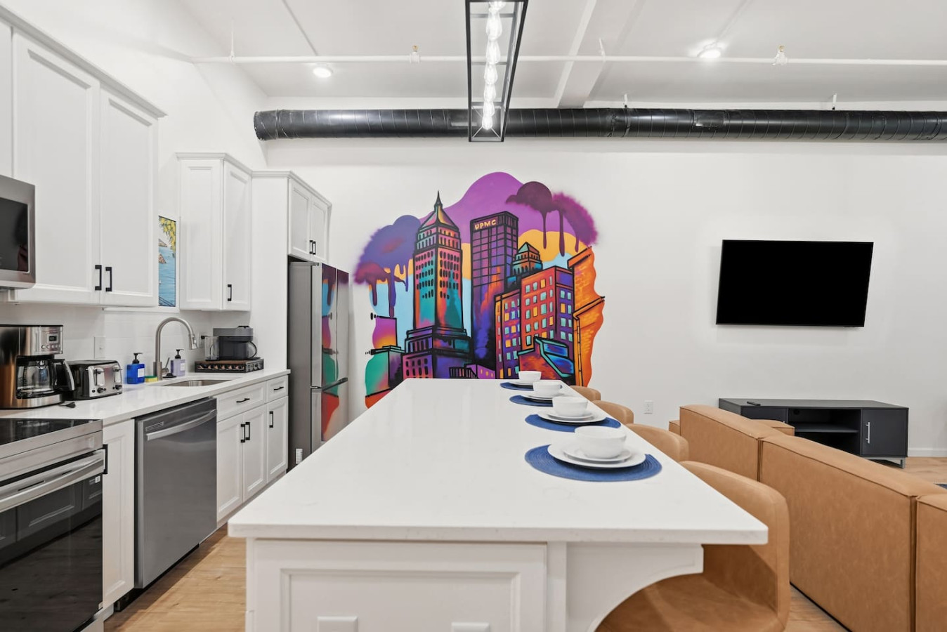 / nightExperience downtown Pittsburgh from this newly renovated double king suite! Step outside and you're surrounded by Pittsburgh's best restaurants, shops, steps away from the Convention Center, theaters, and more. Designed for comfort and convenience in an unbeatable location! -2 King beds - In-unit washer & dryer - Walk to everything - Multiple garages within 5 min - 24/7 guest support Perfect for business trips, events, or weekend getaways. We're here for you before, during and after your stay!