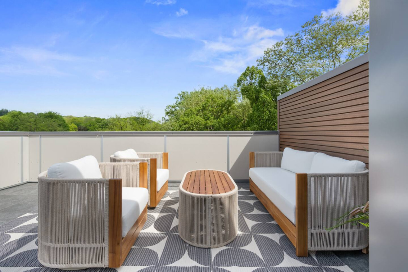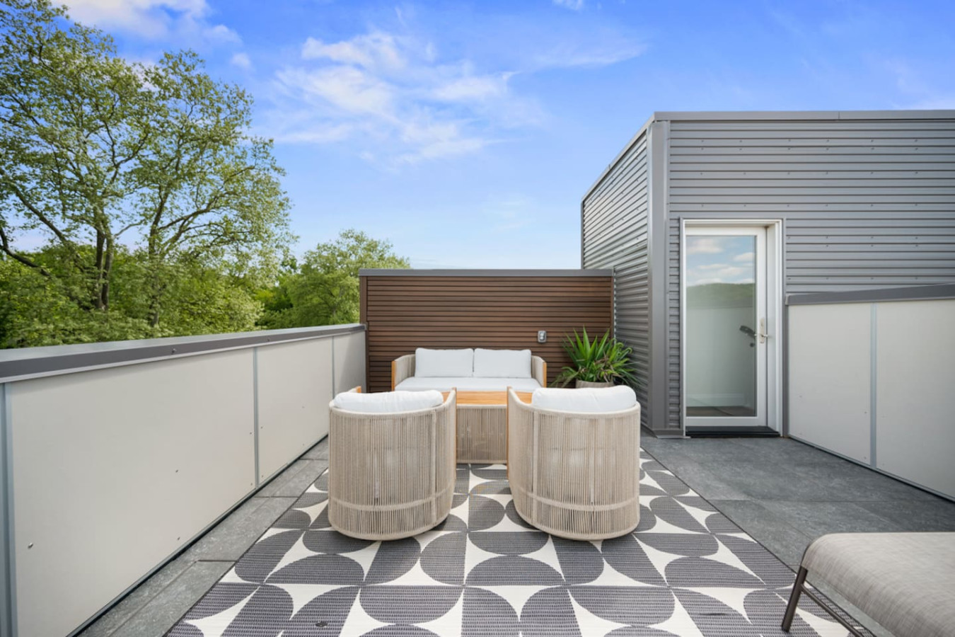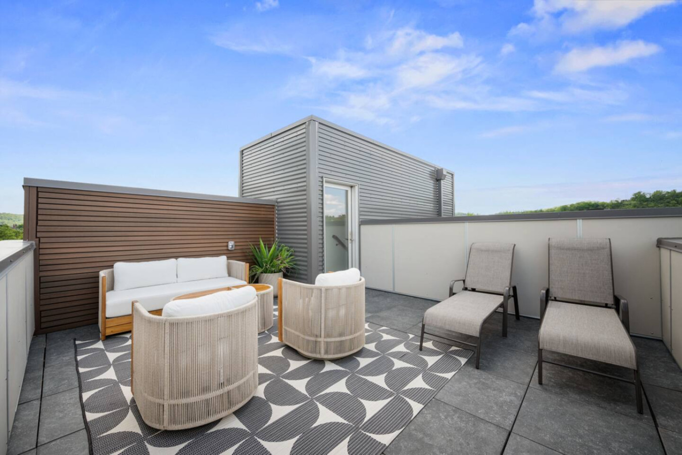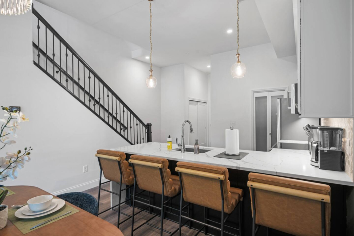 / nightEnjoy our stunning 2 BR Penthouse suite on Butler Street, right in the heart of Lawrenceville. This is a brand new construction building in 2025. Just steps away from several local shops, cafes, and dining options in one of Pittsburgh’s most vibrant neighborhoods. ⭐2 King Beds (memory foam mattresses) ⭐1 Queen Sleeper sofa + 1 Queen Murphy Bed + Pack N Play ⭐3 private decks (+ Rooftop Deck) ⭐Free in-unit washer/dryer ⭐Free off-street parking ⭐Desk with speedy wifi ⭐24/7 guest support Please note: This apartment is accessible only by stairs. You’ll need to climb two full flights, and there is no elevator in the building. Welcome to our immaculate 2-bedroom penthouse suite, nestled on lively Butler Street in the heart of Lawrenceville. This brand-new 2025 build combines stylish comfort with unbeatable location. Just steps from your door, discover local favorites like Parlor Dim Sum, The Abbey, and La Grassa Pizza. Enjoy a night out at Row House Cinema or Arsenal Bowl, or take in local culture at the Roberto Clemente Museum. Nearby landmarks like Allegheny Cemetery and Doughboy Square offer a glimpse into Pittsburgh’s storied past—all just minutes from your stay. Kitchen Area: As you step inside, you’ll be welcomed by a spacious open floor plan. Immediately to your left is a convenient half bathroom. Just ahead is the sleek, fully equipped kitchen featuring brand-new stainless steel appliances, ample countertop space, and plenty of cabinet storage. You’ll find everything you need for a comfortable stay, including a coffee maker, electric kettle, and toaster. A cozy 4-seater breakfast nook provides the perfect spot to enjoy your morning coffee or a relaxed meal. Dining Area: Right next to the kitchen is the dining area, featuring a comfortable 4-seater table—perfect for sharing meals with family or friends. It’s stocked with all the essentials, including dishes, utensils, and glassware, so you can enjoy home-cooked meals with ease. Living Area: The living area offers a cozy place to unwind, featuring a comfortable sofa that easily converts into a sleeper sofa, plus a plush armchair for relaxing. For added sleeping space, a hidden queen-sized Murphy bed folds down effortlessly. A large wall-mounted smart TV is positioned for easy viewing, making it the perfect spot to gather, rest, or enjoy a quiet evening. Step out from the living area onto the deck, where comfortable seating invites you to enjoy the sun or unwind with a cup of coffee. Let’s head upstairs to the next level of this stunning space! Laundry Room: As you step onto the second level of this stunning apartment, you’ll be greeted by the convenience of the laundry room, featuring an in-unit washer and dryer—perfect for keeping everything fresh during your stay. Bedroom 1: Upstairs, you’ll discover the first bedroom, a serene retreat featuring a king-sized bed with a plush memory foam mattress. Natural light pours in through a large glass window, filling the room with warmth and creating a cozy, elegant ambiance. Storage is plentiful, with a spacious closet and dresser to keep your belongings organized. The en suite bathroom elevates your experience, offering a stylish vanity with a large mirror, a luxurious showerhead, and a relaxing tub—complete with all the essentials for your comfort. Bedroom 2: At the end of the hallway, you’ll find the second bedroom, featuring a king-sized bed with a comfortable memory foam mattress. A big wall-mounted smart TV is positioned directly across from the bed, perfect for relaxing and enjoying your favorite shows. There’s plenty of storage with a spacious closet and dresser, plus a desk if you need to get some work or study done. The en suite bathroom offers a sleek standing shower with a premium showerhead, dual vanity sinks with mirrors, and all the essentials like shampoo, conditioner, and body wash. Step outside from the second bedroom to your own private deck, where you can unwind and enjoy the sun. Deck: Finally, let’s head upstairs to the stunning rooftop deck. Thoughtfully furnished with a stylish outdoor sofa, sun loungers, and comfortable chairs, it’s the perfect spot to relax, soak up the sun, and take in the beautiful views of Lawrenceville. Things to note: Pets: Pets are welcome for a small fee of $25 per pet/per stay. Washer/Dryer: Guests have access to a convenient in-unit washer and dryer, free of charge, making laundry a hassle-free part of your stay. Stairs: Please note, this apartment is only accessible by stairs—guests must climb two full flights to enter, as there is no elevator in the building. Inside the apartment, you’ll also need to climb one set of stairs to reach the bedrooms and another set to access the rooftop deck.