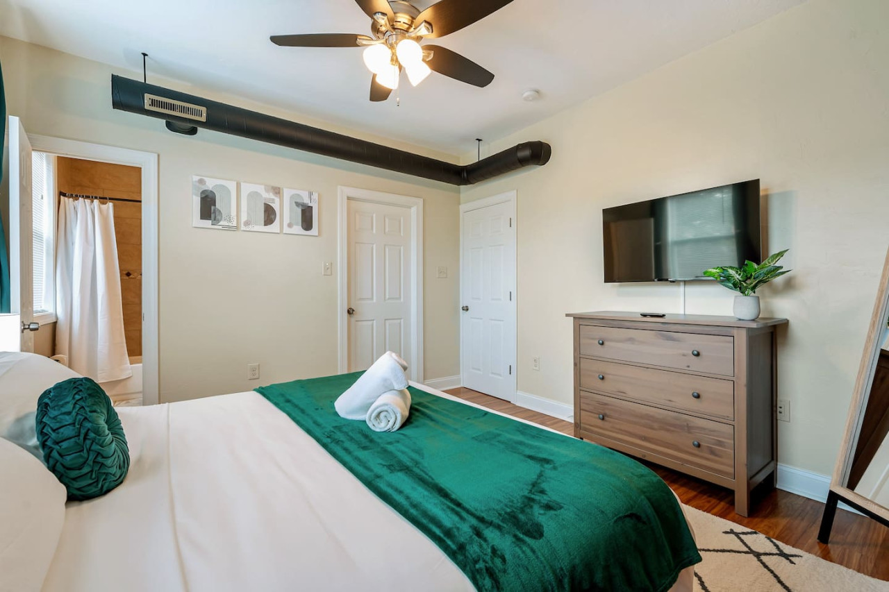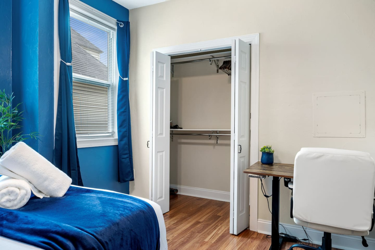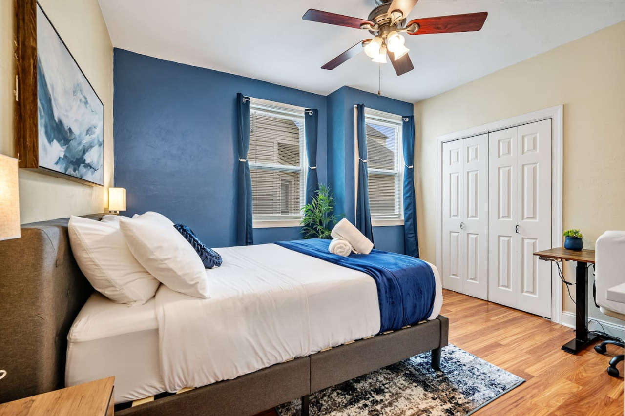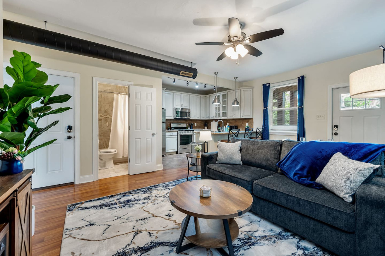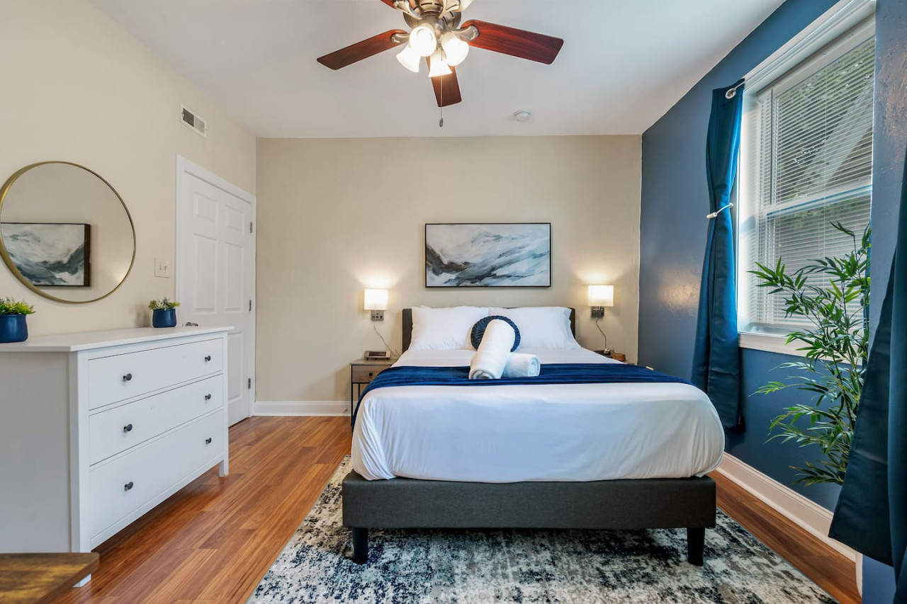 August 2025 5.00This 2nd floor apartment is modern and well furnished. E-locks on doors made it easy for entry/exit and it felt very secure. Space is great and everything is well maintained and clean. Beds are very comfortable too. The city was particularly warm during our trip and the AC worked so well! All amenities worked properly and it truly felt like a home away from home. Jake was the most courteous and professional host. He responded to my numerous questions patiently and promptly. The area is lovely, with tree-lined streets and beautiful homes. Area is safe with street parking. Traffic is fairly light in the surrounding streets as well. This is a truly great place to stay. It's convenient & safe location , good & modern amenities and a great host make this home quite the amazing find.