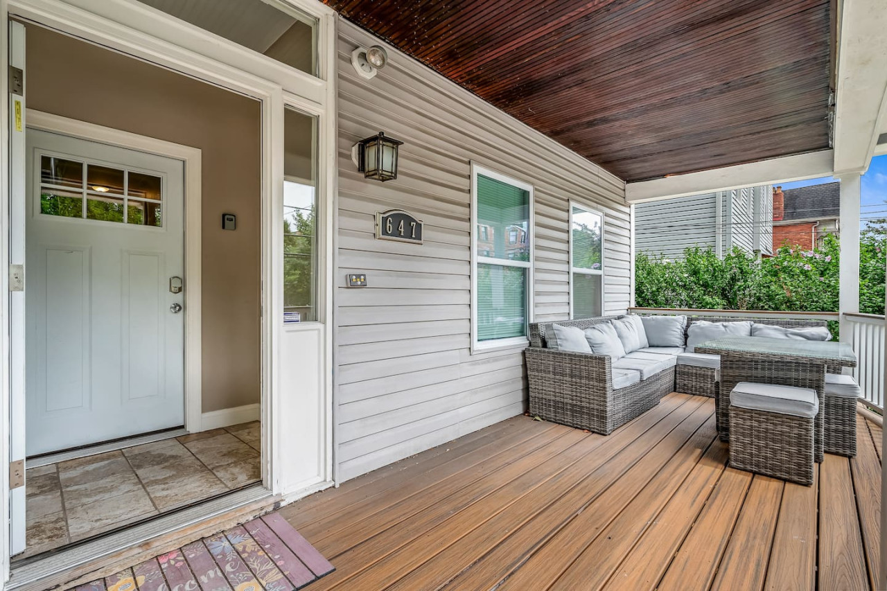 August 2024 5.00Great place for visiting Pittsburgh. Great location near Walnut St, nice deck and front porch for relaxing there. Great, responsive host. Would stay there again when visiting family nearby.