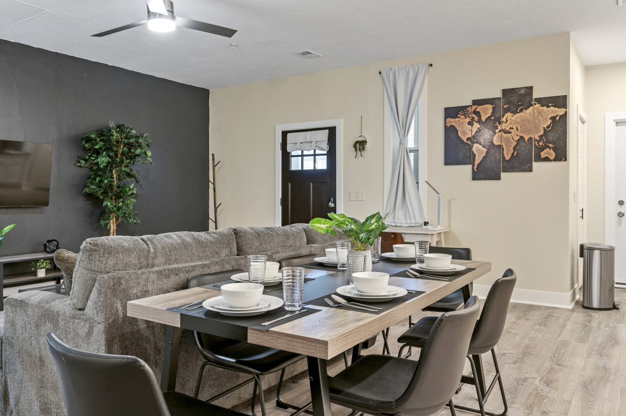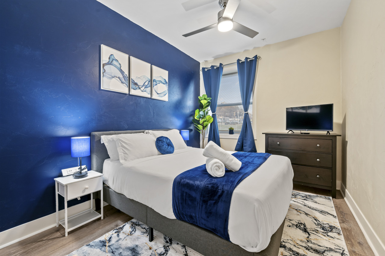 / nightEnjoy our spacious and upscale 2 bedroom suite located in the friendly Friendship/ Shadyside neighborhood. This newly renovated retreat is just a short distance from all that Pittsburgh has to offer! Steps away from Whole Foods and short walk from Yinz Coffee! ⭐2 Queen beds (Memory foam mattresses) ⭐Queen pull out bed ⭐Pack n play ⭐Free in-unit washer/ dryer ⭐Desk w/ speedy wifi ⭐Pet-friendly ⭐24/7 Guest support ⭐Free off-street parking - 1 vehicle ⭐Close to CMU / Pitt! Conveniently located near Pittsburgh's prestigious hospitals: UPMC Shadyside: Just 0.9 miles away, a quick 5-minute drive. West Penn: Only 1.0 miles away, a brief 4-minute drive. Children's Hospital: Just 1.4 miles away, a short 6-minute drive. Step into our welcoming 2-bedroom suite, perfectly situated in the lively Friendship/Shadyside neighborhood, blending contemporary comfort with ultimate convenience. Recently refurbished, this expansive sanctuary grants effortless exploration of Pittsburgh's highlights. Enjoy the convenience of Shadyside, just a mere 0.7 miles away, offering a delightful 13-minute walk or a brief 3-minute drive. Experience the vibrant allure of Downtown Pittsburgh with a swift 14-minute drive from our location. Conveniently located within the apartment complex, simply head upstairs to reach your bright 1-bedroom haven. This is a 2nd floor apartment that is accessible via a smart lock on the front door, step into modern comfort and effortless relaxation. Living Area: Step into our welcoming retreat and discover a spacious open layout designed for relaxation and entertainment. Sink into the plush comfort of the large sofa that turns into a queen-sized sleeper in front of a 55" HDTV with Roku, offering access to a plethora of TV subscriptions for your viewing pleasure. Adjacent, two inviting armchairs await, accompanied by a cozy lamp, creating the ideal nook for indulging in a good book or unwinding after a day of exploration. Additionally, there's a functional desk available, perfect for work or studying. Kitchen and Dining Area: Equipped with a comprehensive array of appliances including a fridge, dishwasher, electric stove, microwave, hot water kettle, toaster, and blender, this space is fully prepared for all culinary and dining requirements. A 6-seater dining table is available for comfortable meals. All essential cooking utensils, pots, and pans are provided, alongside a complete set of dining essentials including plates, cups, bowls, and coffee mugs. Bedroom 1: Next to the dining area is a bright and clean 1st bedroom with a comfy queen-sized bed. The mattress is memory foam and is SUPER comfy! You'll find plenty of storage in the room with closets and a dresser. There's also a smart TV for entertainment before sleep. And don't forget the large mirror for a quick check before heading out. Bathroom: Next to the first bedroom is our bathroom stocked with all your essential needs, including a hairdryer, body soap, shampoo, conditioner, toilet paper, hand towels, and bath towels. The bathroom features a tub and a luxurious shower head, ideal for refreshing yourself after a day exploring the charming city of Pittsburgh. Bedroom 2: Similar to the first bedroom, the second bedroom also features a queen-sized bed with a memory foam mattress that is incredibly comfortable! You'll find plenty of storage space in the room with closets and a dresser. Additionally, there's a smart TV for your entertainment before bedtime. Just like the first bedroom, this room also boasts a large mirror, perfect for a quick check before heading out. Things to note: Steps: The apartment is located on the second floor of the apartment complex. The apartment requires one flight of steps to access. Washer/Dryer: Guests have access to a convenient in-unit washer and dryer, free of charge. Pet Friendly: The apartment is pet friendly. However, we do require a $20 fee per pet. Internet/WIFI Connection: Ultra-fast 300mbps of internet connection. A/C and Heating: Central AC and heating is available in the apartment which can be controlled via thermostat. Parking: There's a full parking lot across the street. Additional street parking is available for extra cars, each unit is allocated one spot in the lot. For street parking, you'll need to register your vehicle for permit parking, but don't worry, registration is simple and included in our check-in instructions.