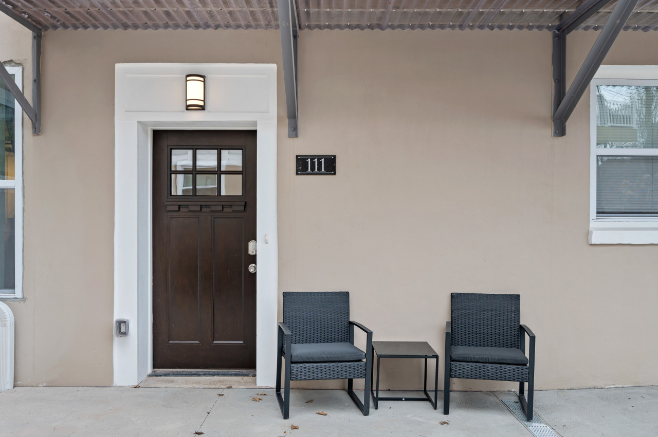 October 2025 5.00This unit is in a nice location, across from a park with a basketball court and playground equipment, and on a street with homes on either side. There is a courtyard in front of the unit with tables, chairs and umbrellas. Parking is easy and close. Short walk to great coffee shops and restaurants. Unit was quiet, well-appointed and clean. Would recommend and stay here again.