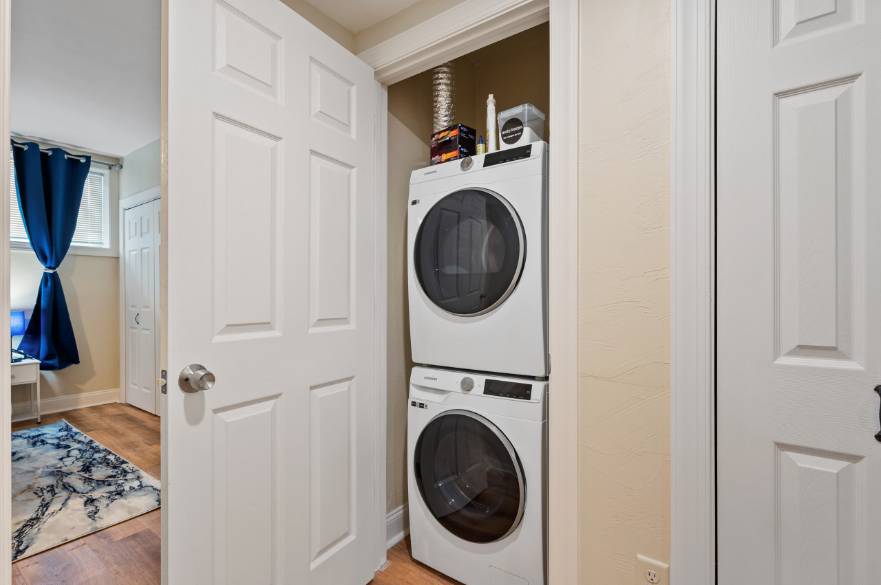 December 2025 5.00Even though it was only one bedroom, the room was very large and the bed was very comfortable. Plus there was a very large closet to hang clothes and store your luggage. Loved that we had a small washer and dryer in the unit too! We had two dogs with us and it was very convenient to take them out. The first floor was a big plus as well as the parking space being available.